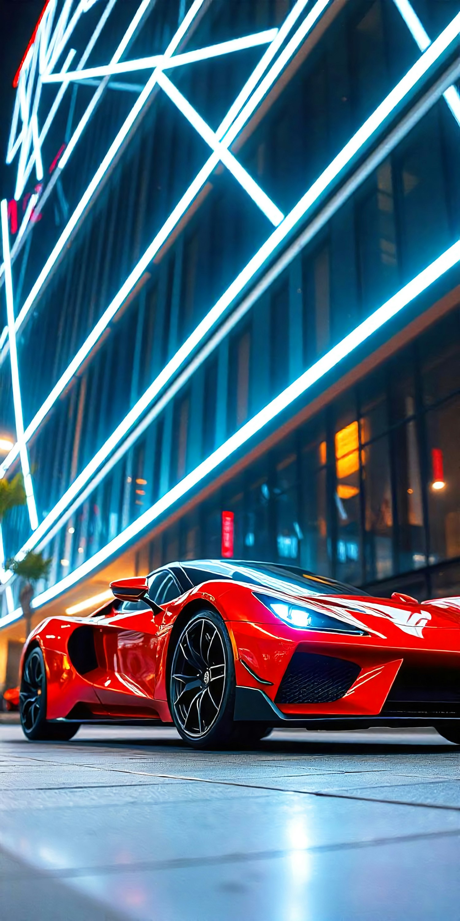 Red Sports Car in Urban Nightscape