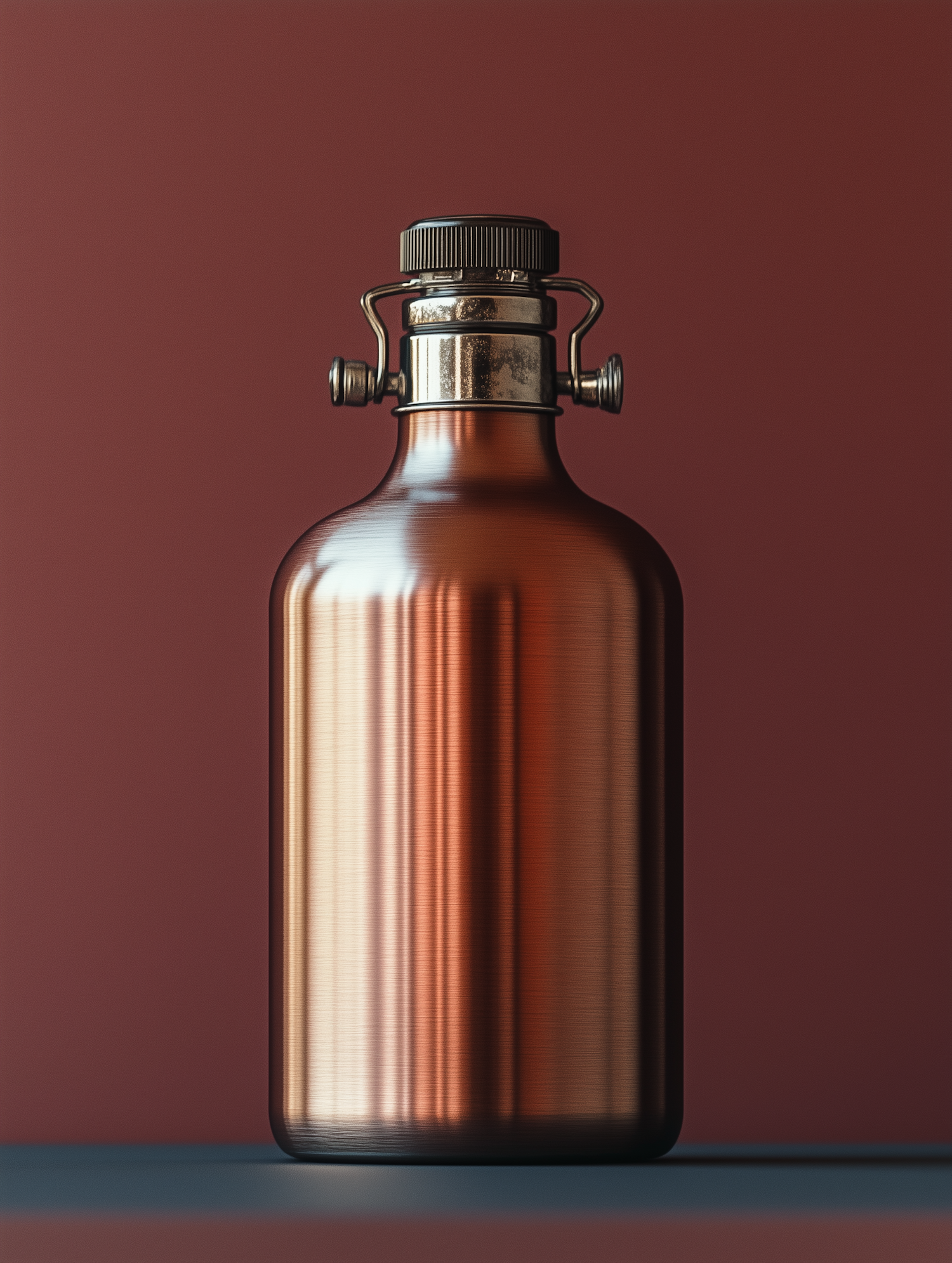 Reflective Copper Bottle on Dark Pink Backdrop