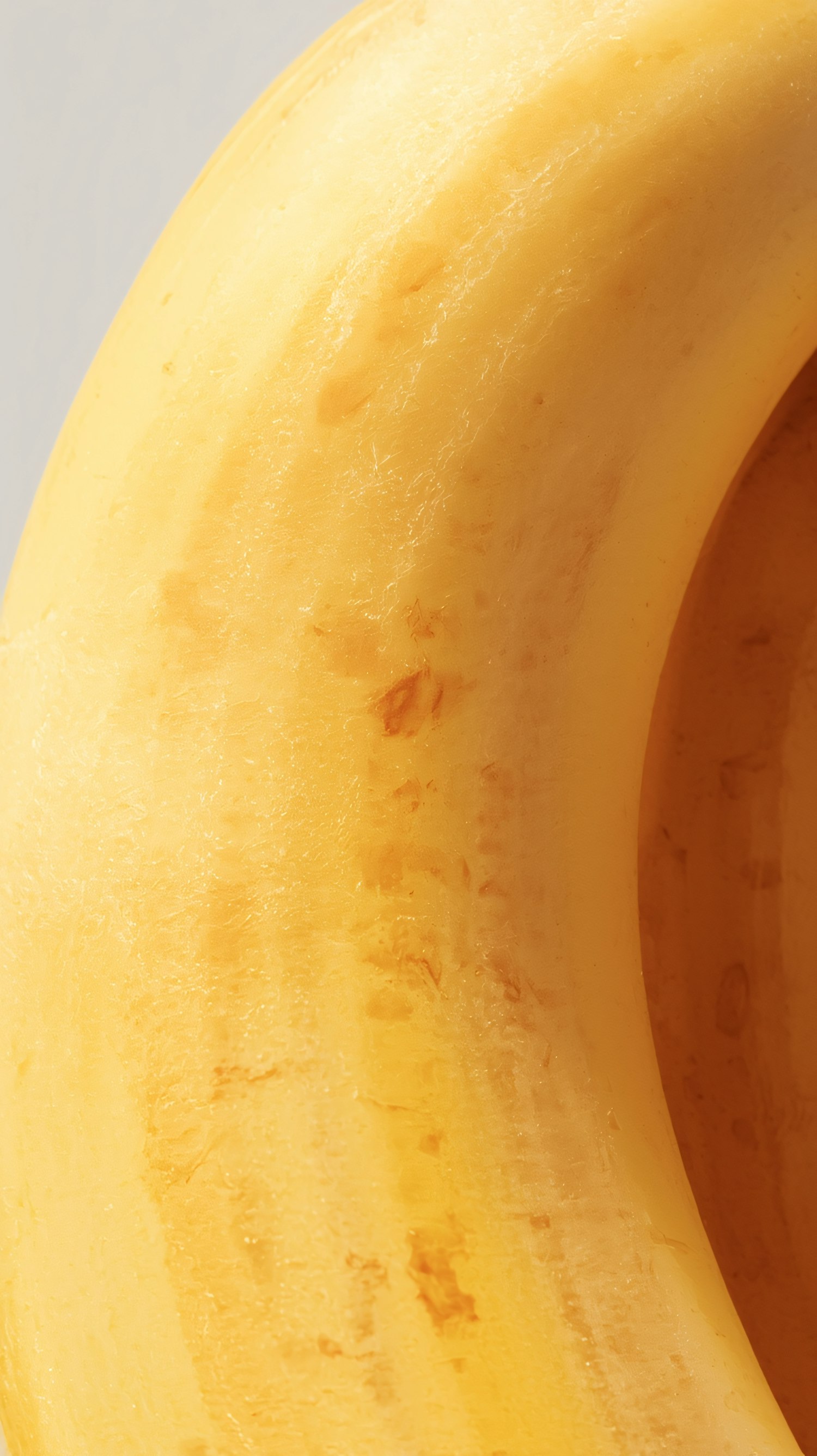 Close-up of a ripe banana's yellow skin with brown speckles, highlighting its natural texture and vibrant color.