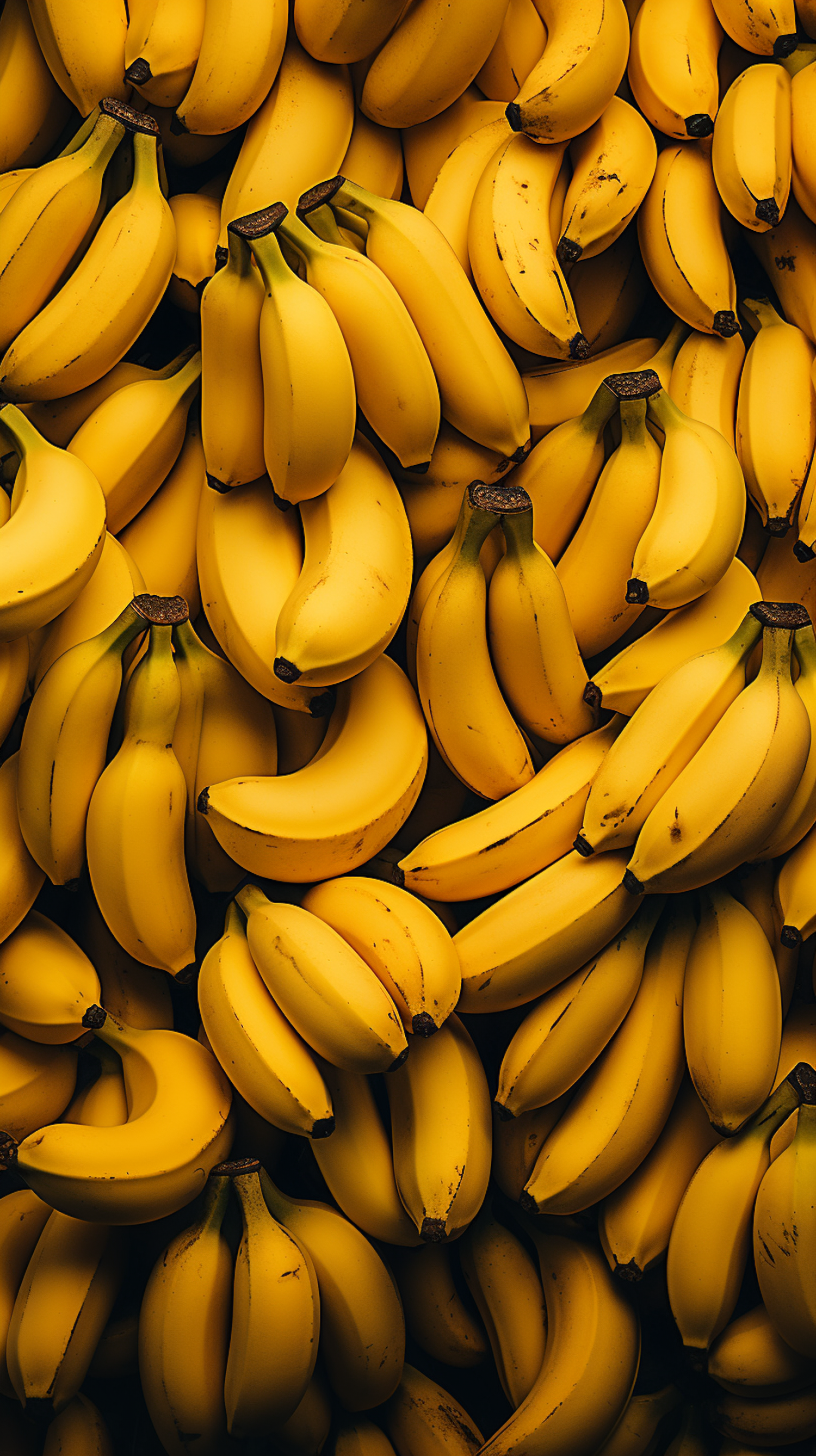 A vibrant display of ripe yellow bananas, tightly packed and fresh, highlighting their natural beauty and abundance.