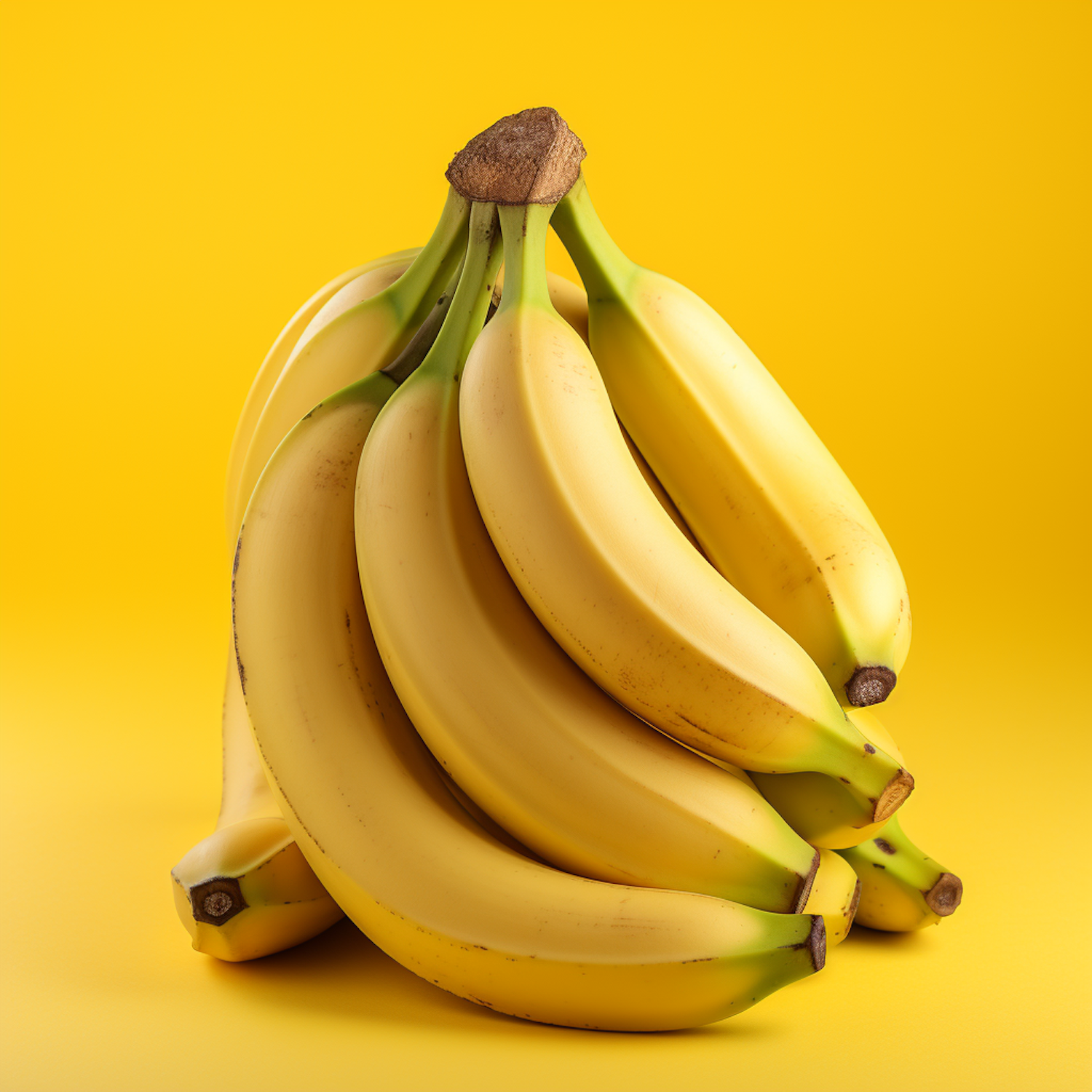 A vibrant bunch of ripe bananas against a yellow background, showcasing freshness and simplicity in a harmonious composition.