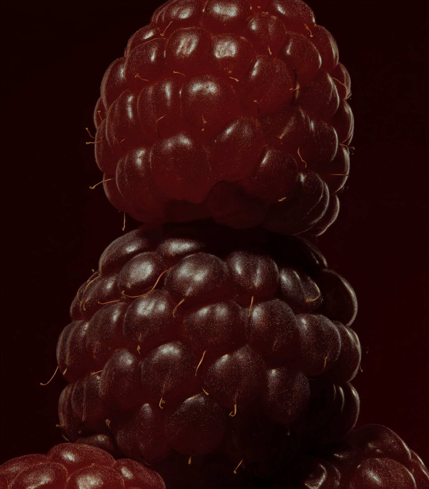 Close-up of ripe raspberries with detailed texture and vibrant red hues against a dark background, highlighting their natural beauty.