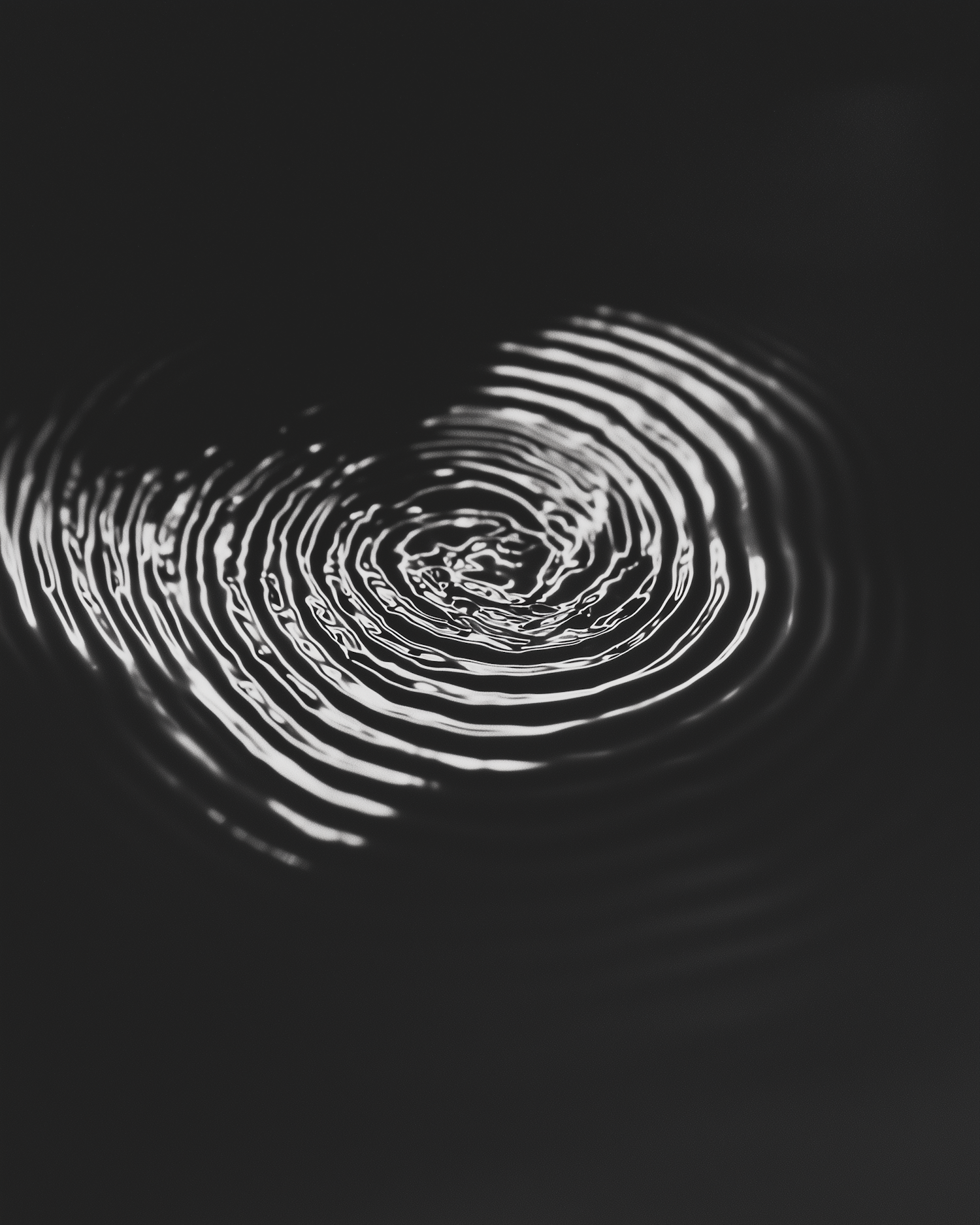 Mesmerizing ripples on dark water, illuminated by soft light, creating a minimalist and abstract pattern of concentric circles.