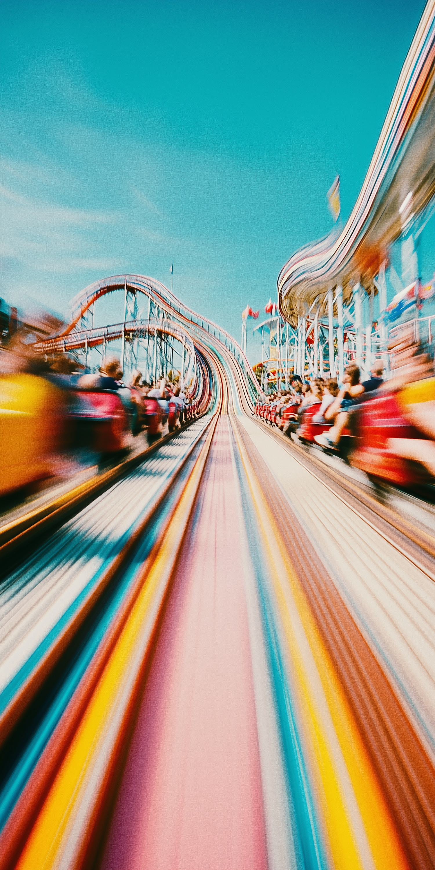 Experience the thrill of a roller coaster ride with vibrant colors and dynamic motion in this exciting amusement park scene.