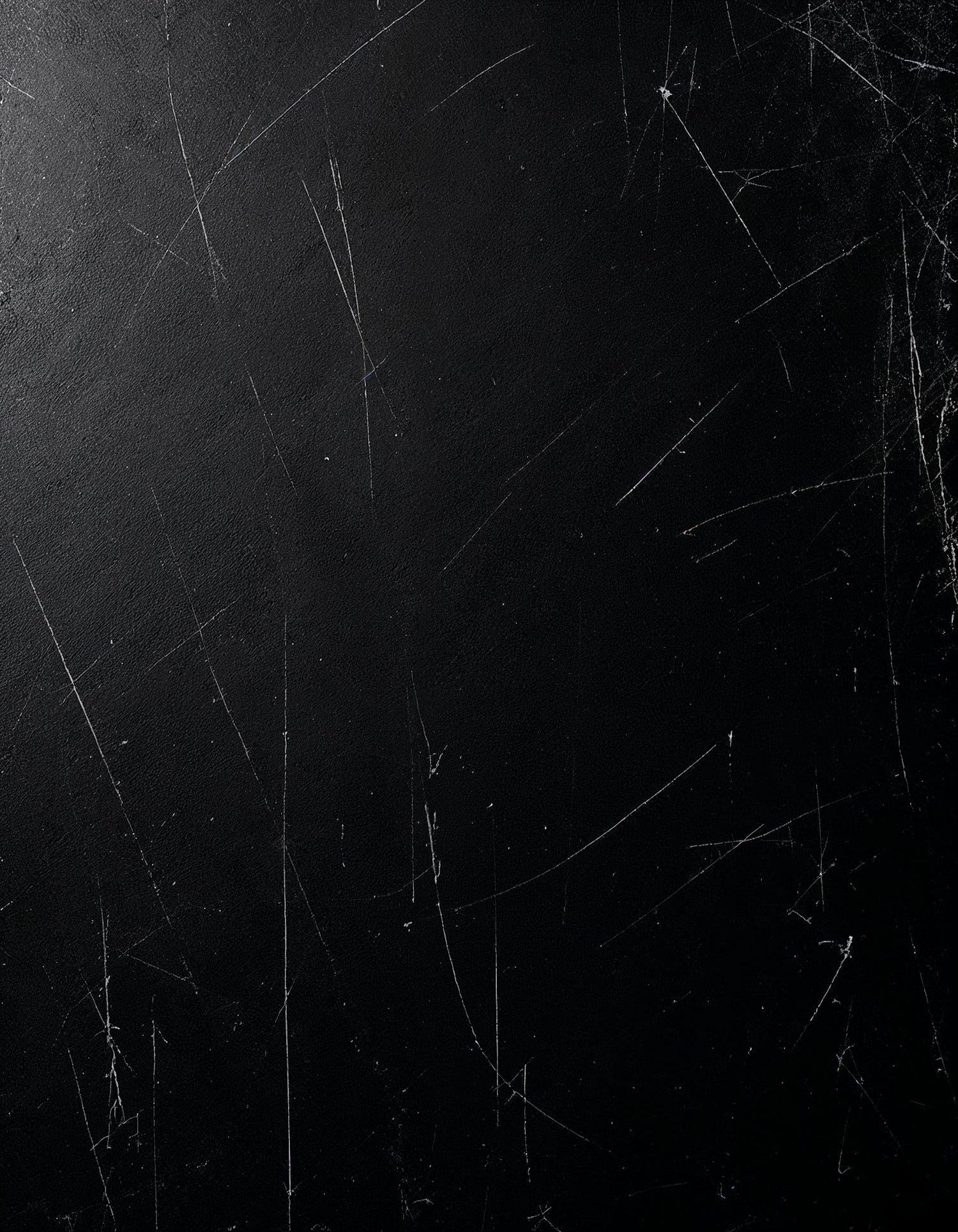 A black textured surface with scattered white scratches, creating a rugged and worn appearance.