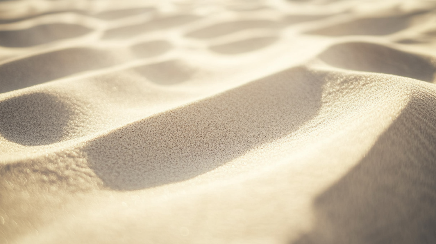 Golden sand dunes with smooth textures and gentle shadows, bathed in warm sunlight, creating a tranquil and natural scene.