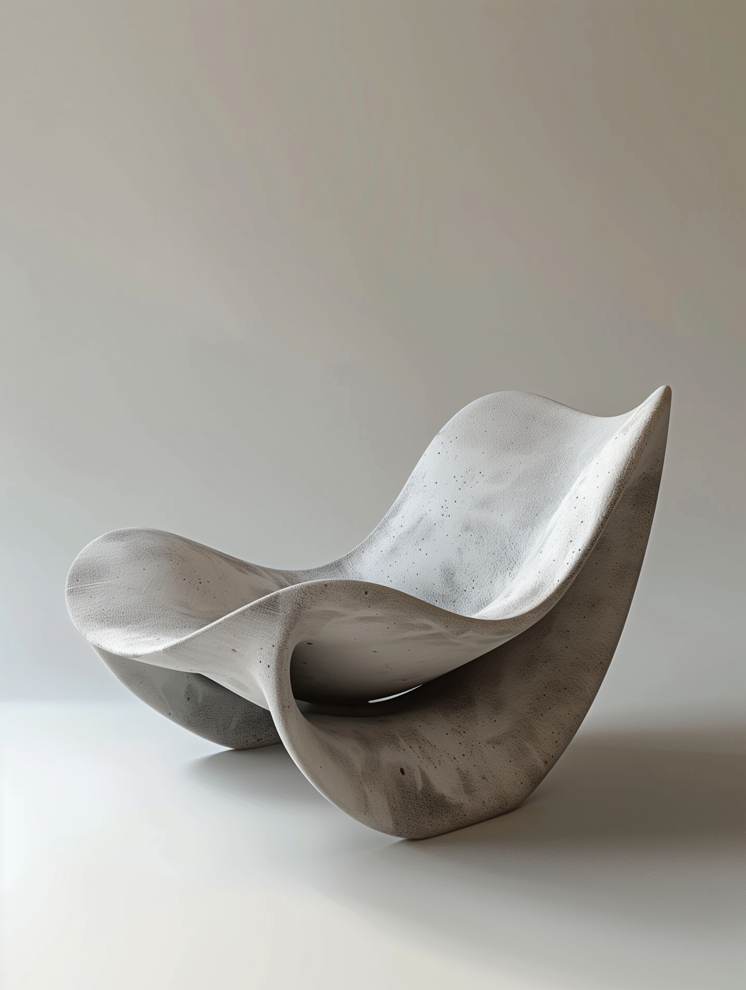 Sleek concrete chair with a wave-like sculptural design, blending modern aesthetics and functionality. Perfect for contemporary interiors.