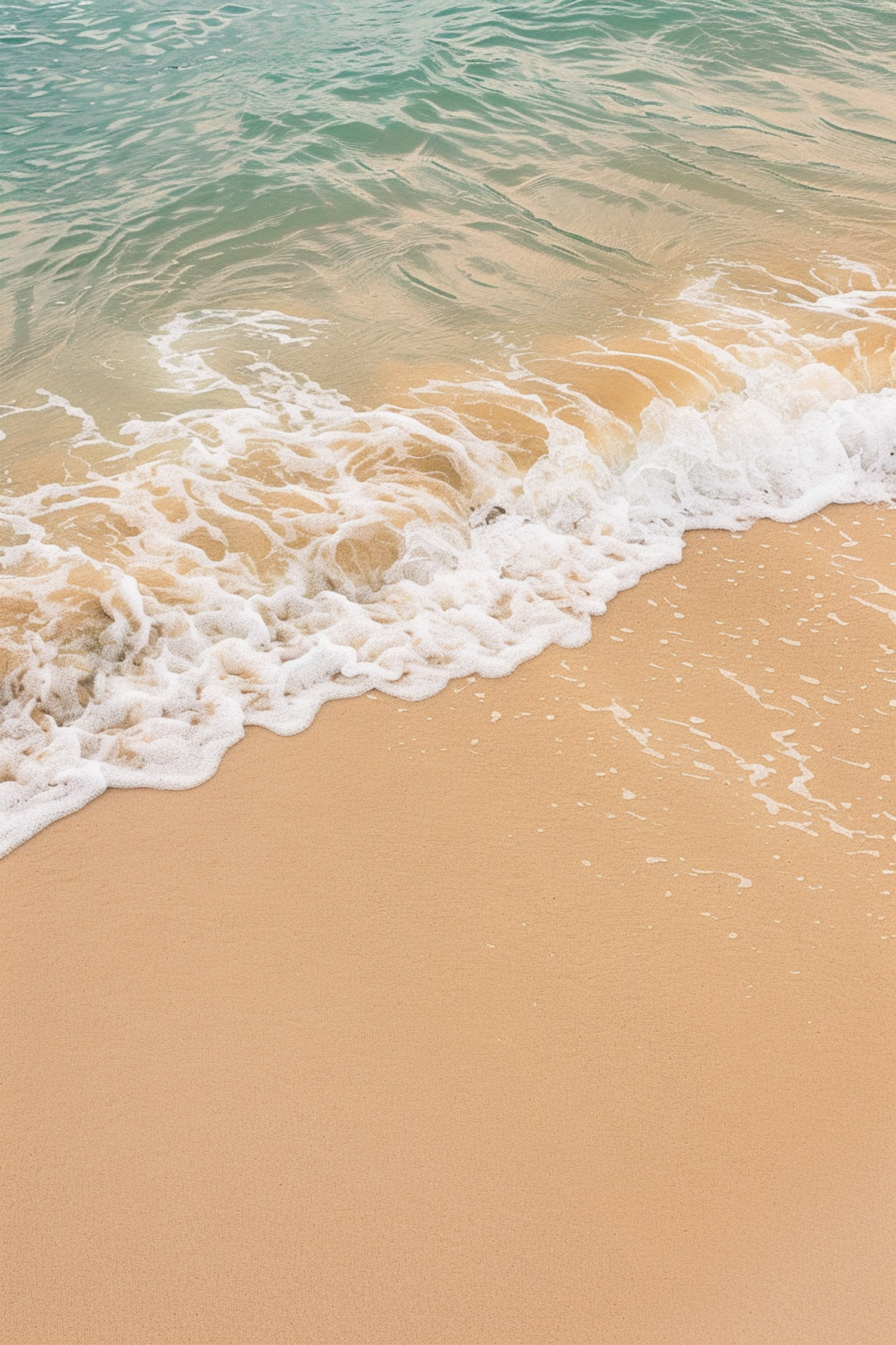 Serene beach scene with gentle turquoise waves and golden sand, creating a peaceful and inviting atmosphere.