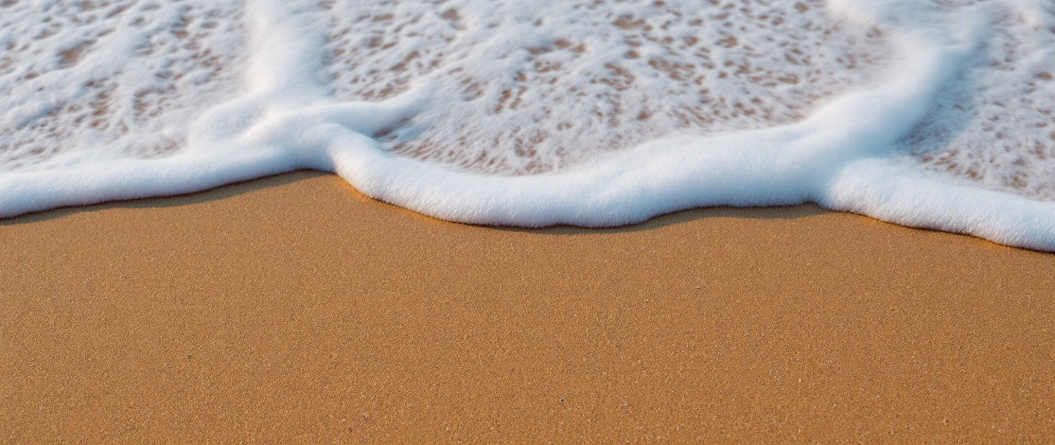 Golden sand meets foamy ocean waves in a tranquil beach scene, capturing the serene beauty of nature's shoreline.