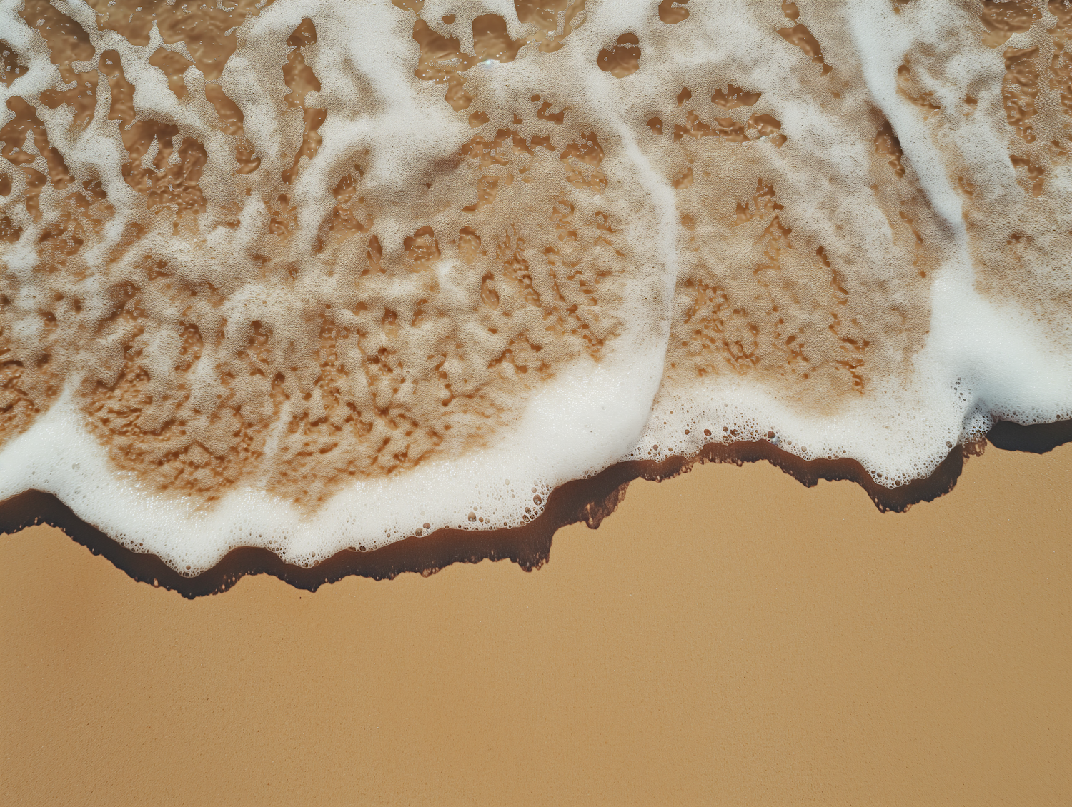Golden sand meets foamy waves, creating a serene shoreline scene with intricate patterns and warm, natural tones.