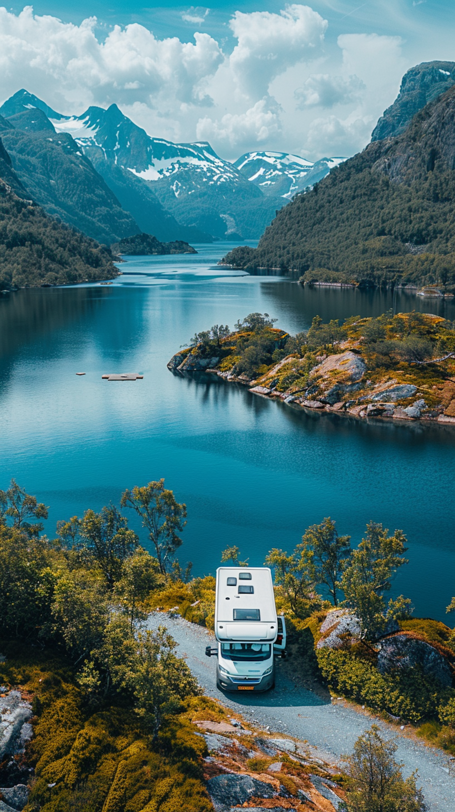 Serene Fjord Landscape with Camper Van