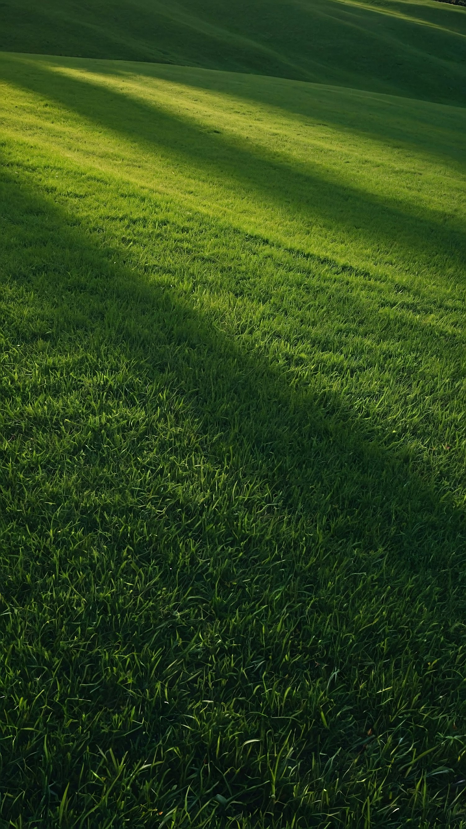 A peaceful grassy field with long shadows and rolling hills, captured in soft sunlight. Perfect for nature and landscape enthusiasts.
