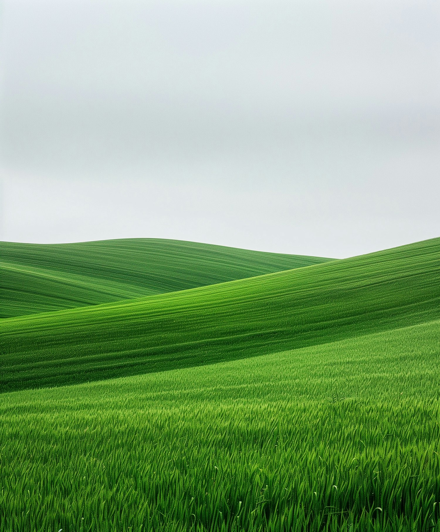 Lush green rolling hills under an overcast sky, creating a serene and tranquil landscape.