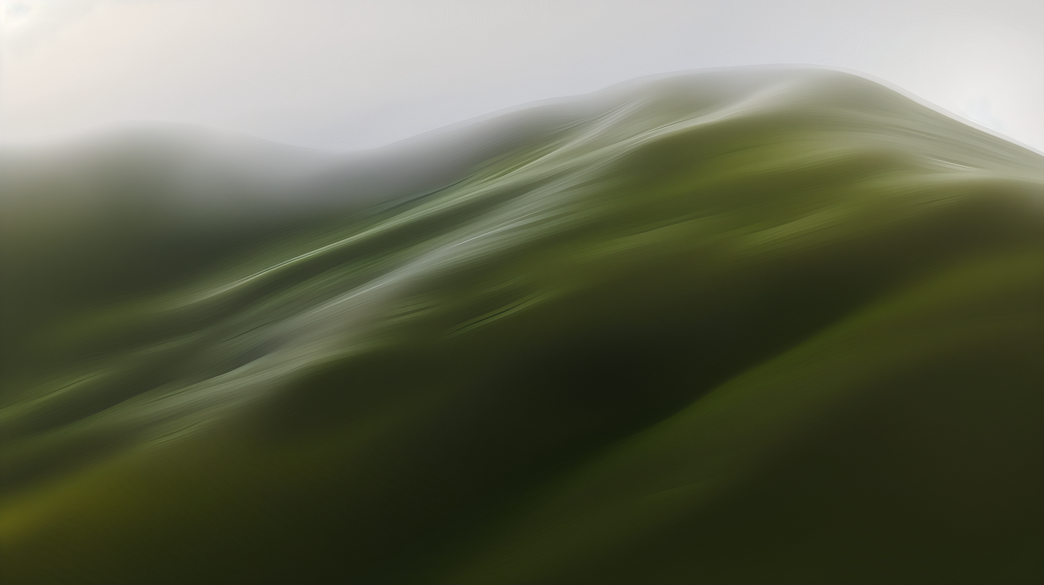 Abstract depiction of green hills with smooth gradients and soft lighting, creating a serene and tranquil visual effect.