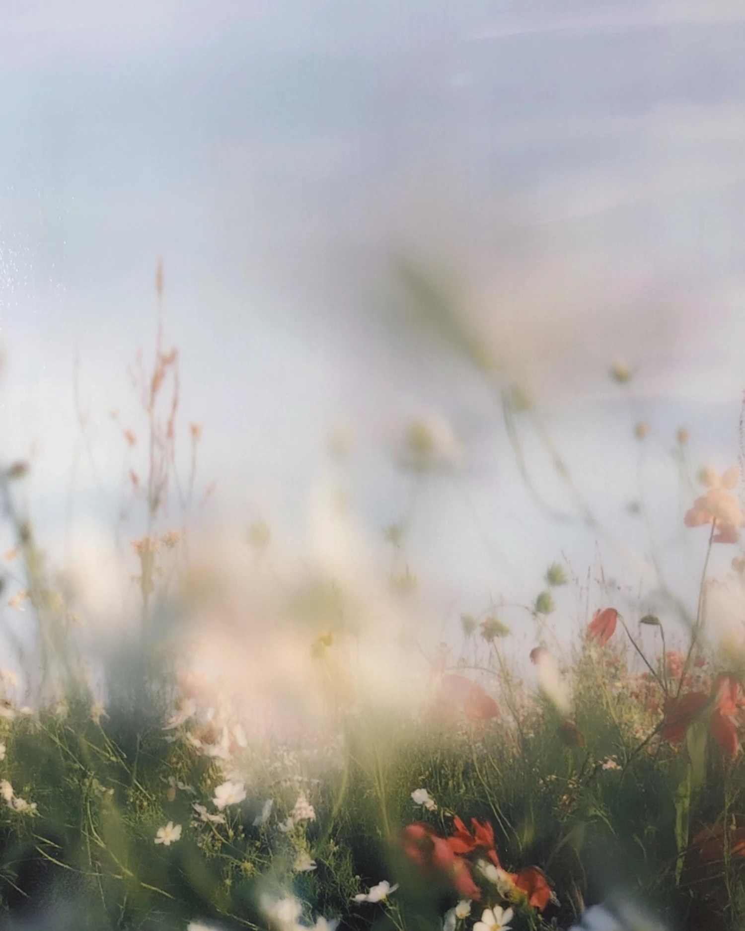A dreamy meadow with blurred wildflowers and a soft gradient sky, creating a serene and tranquil natural scene.