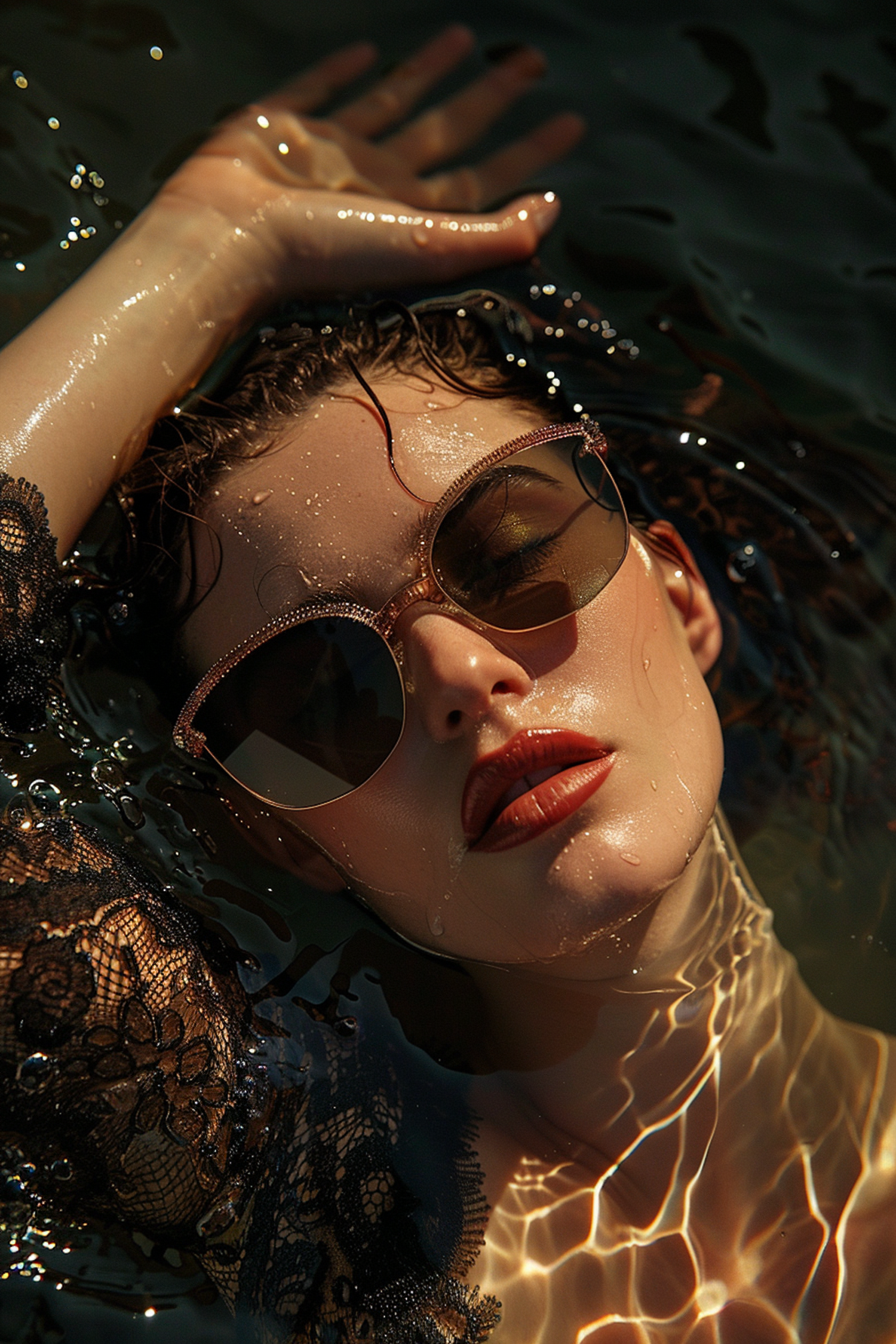 Serene Water-Submerged Woman with Sunglasses