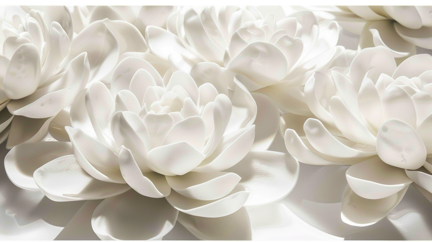 Elegant white flowers with layered petals create a serene and calming visual, showcasing purity and tranquility.