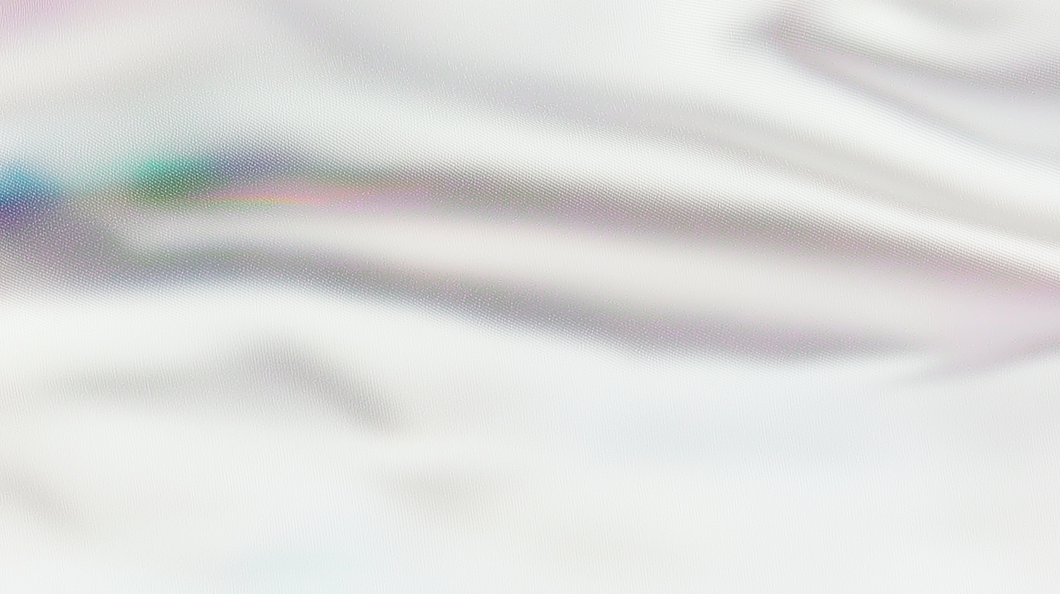 Close-up of silky white fabric with iridescent hues and flowing texture, showcasing its luxurious and shimmering appearance.