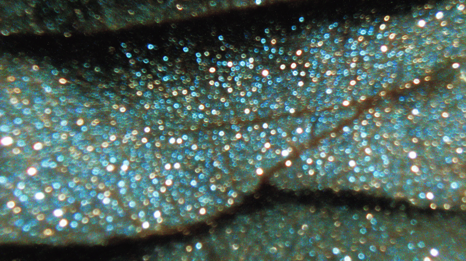 A close-up of a textured surface with shimmering blue and silver particles, creating a sparkling, starry effect.