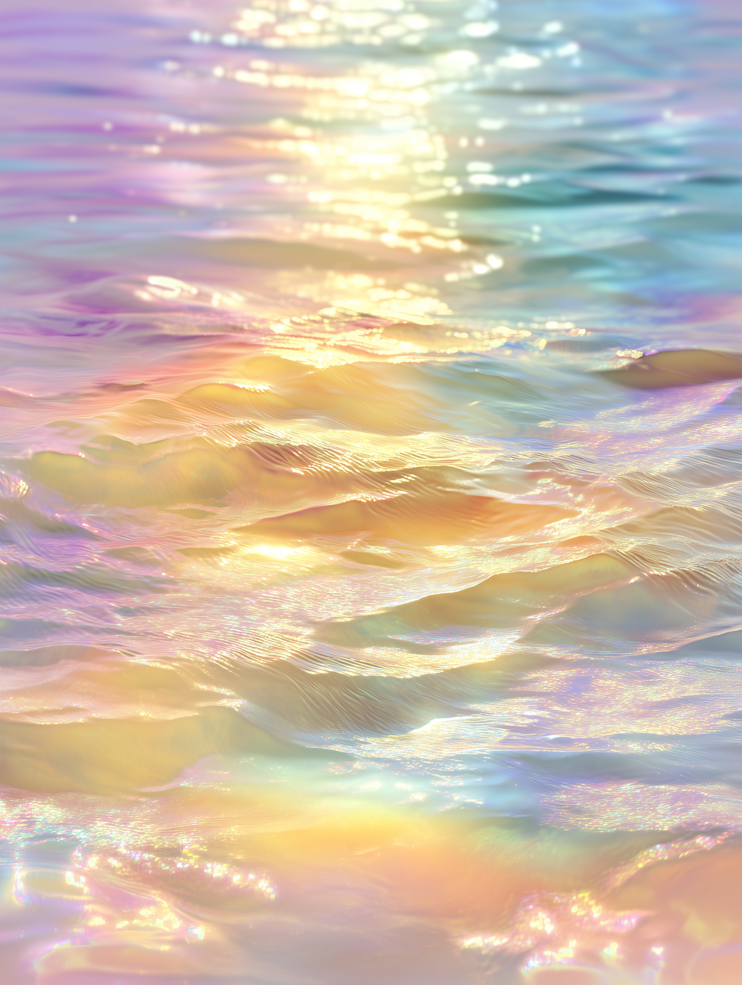 A mesmerizing view of shimmering water reflecting a spectrum of pastel colors, creating a dreamy and ethereal atmosphere.