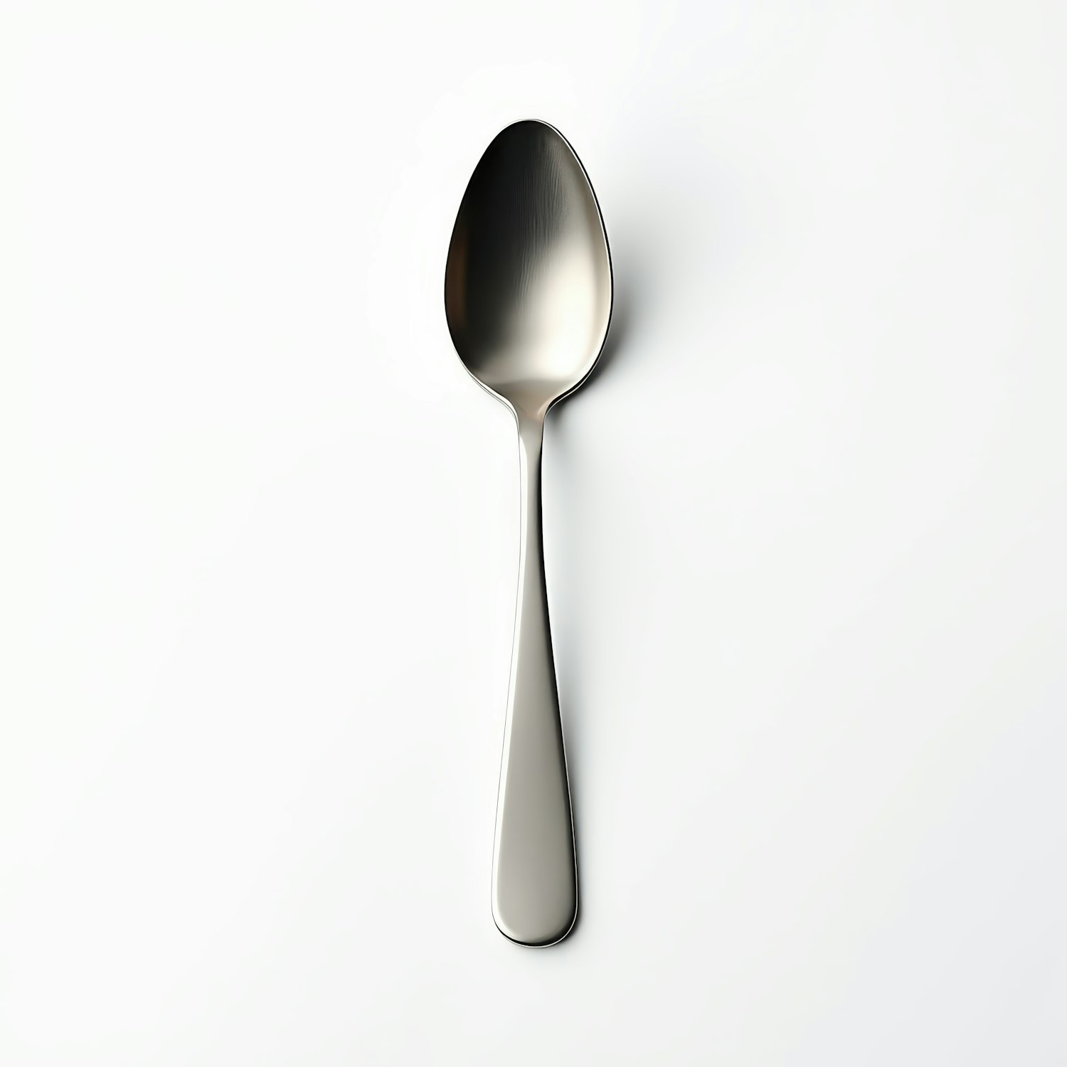 Elegant stainless steel spoon on a white background, showcasing its sleek and polished design.
