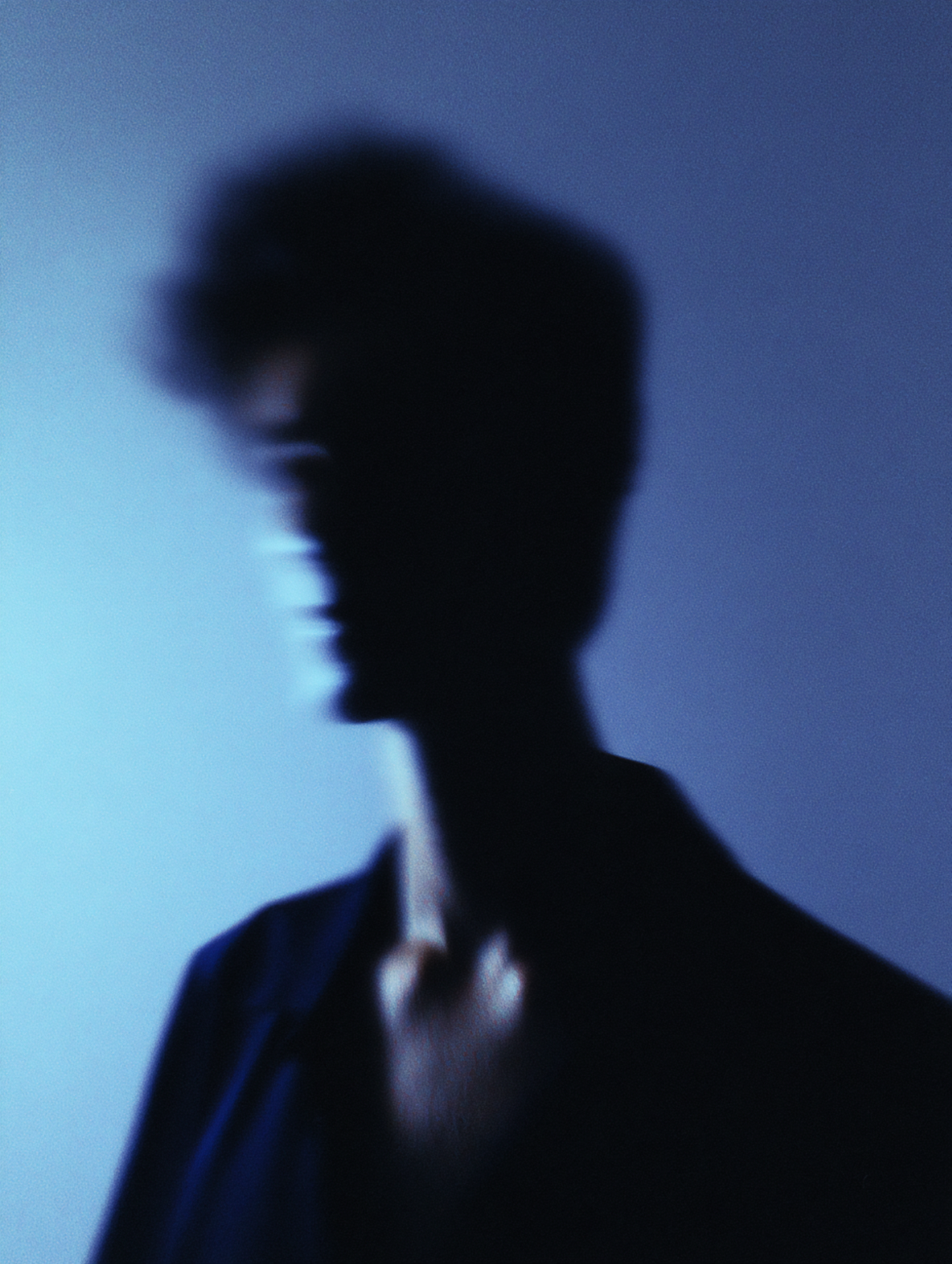 Abstract blurred silhouette of a person in blue lighting, creating a dreamy and mysterious atmosphere.