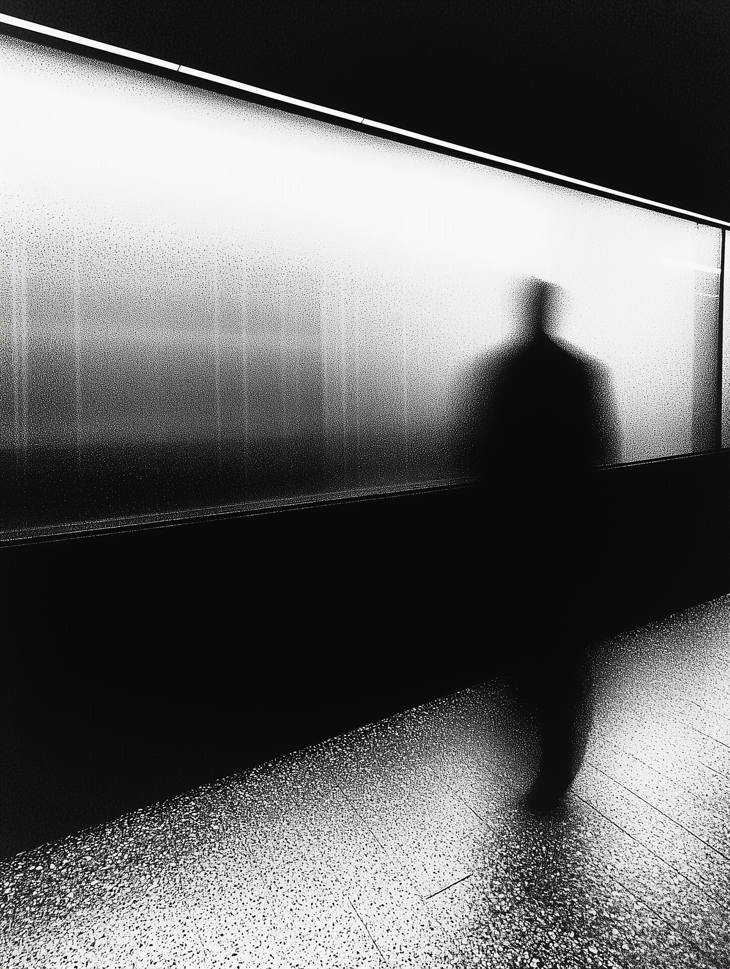 Abstract silhouette against a glowing background, creating a mysterious and monochromatic visual effect.