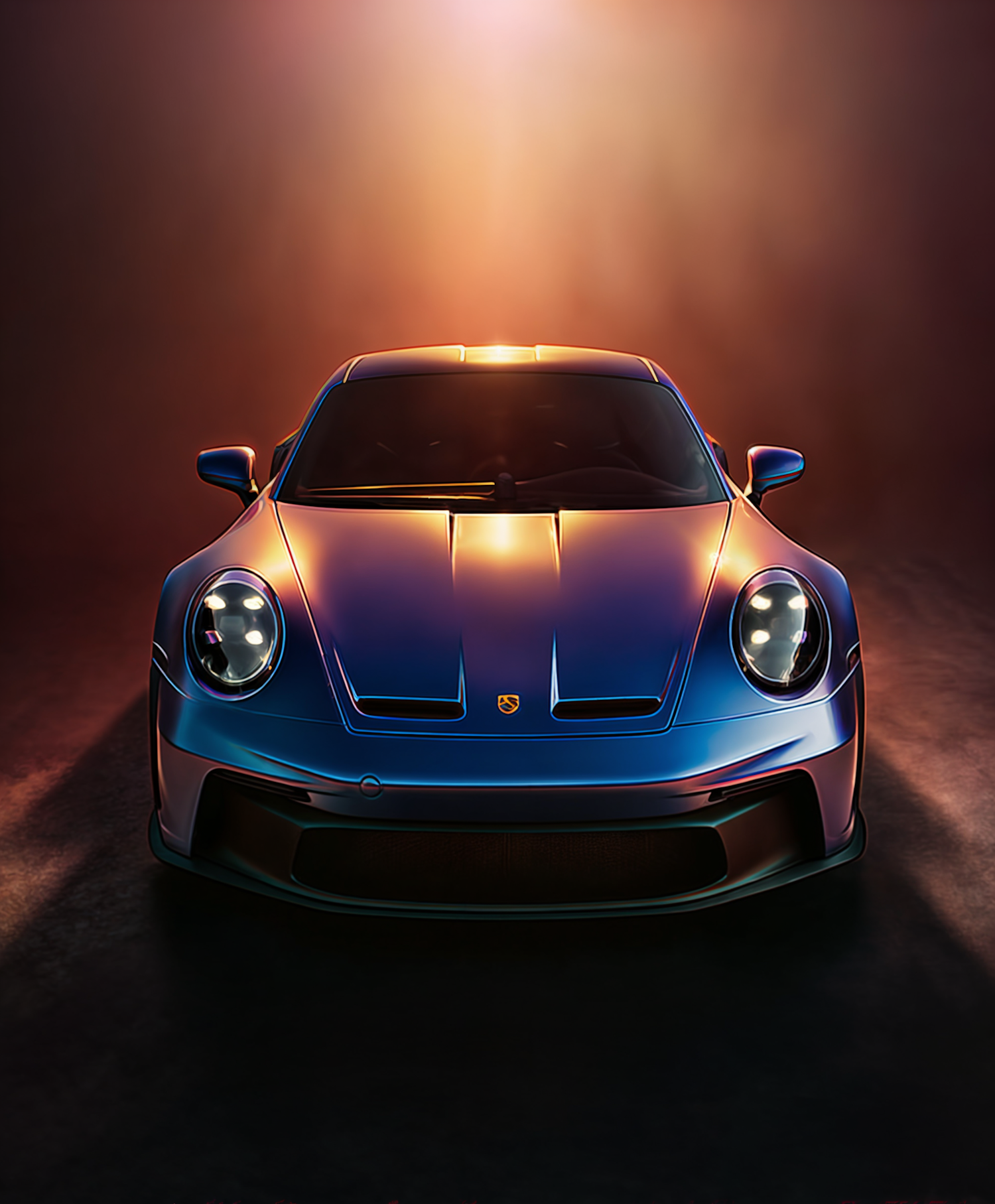 A stunning blue Porsche 911 sports car with sleek design and dramatic lighting, showcasing its elegance and performance-focused aesthetics.