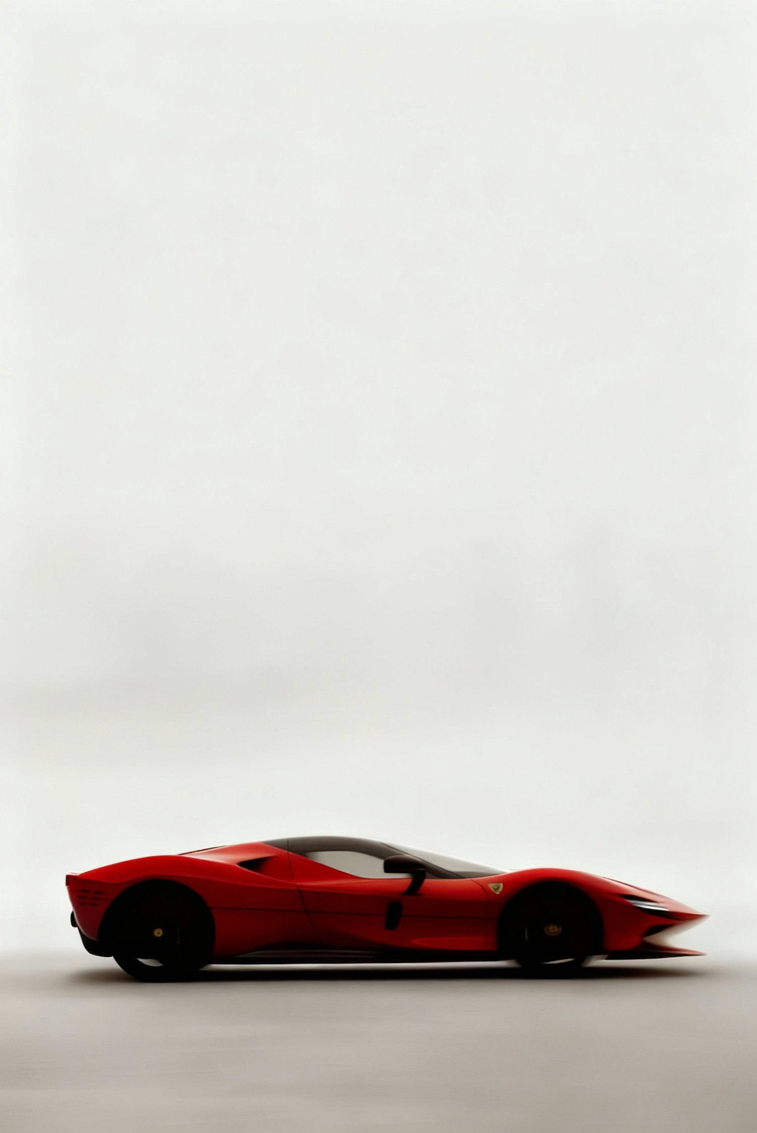 A sleek red sports car with a streamlined design against a minimalistic light gray background, showcasing its luxury and elegance.
