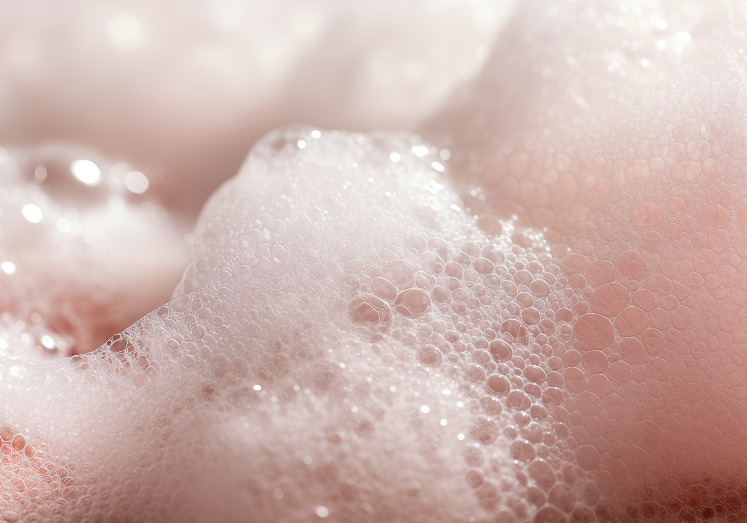 Close-up of delicate soap bubbles with soft lighting, showcasing their intricate texture and translucent beauty.