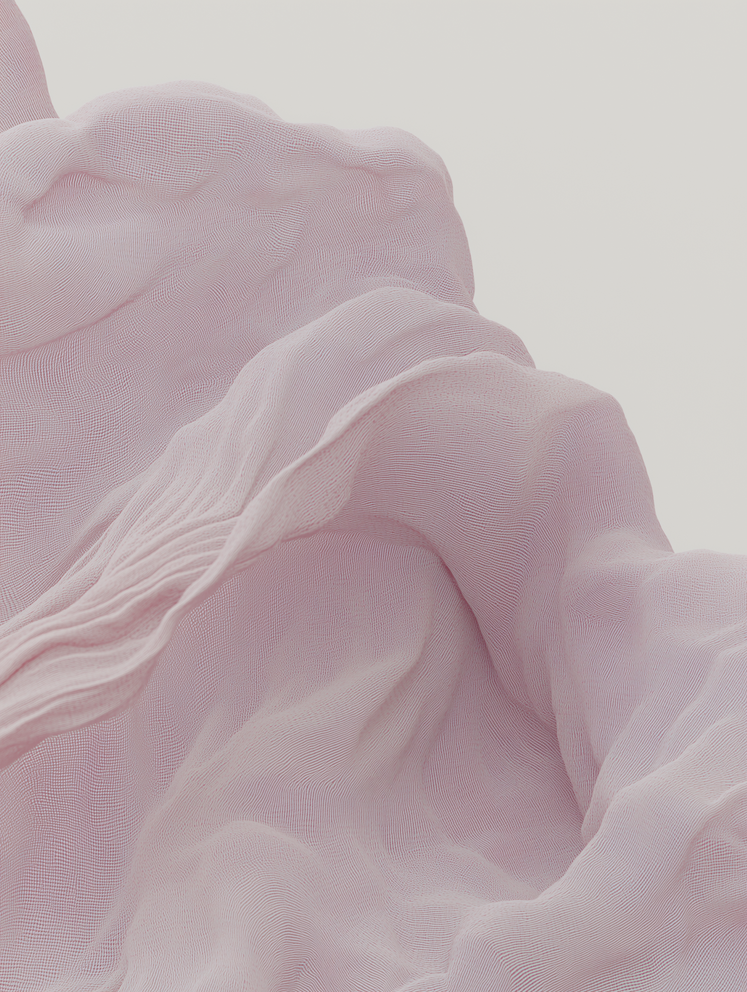 Soft pink fabric with delicate folds and translucent texture, creating a serene and elegant aesthetic against a minimal off-white background.