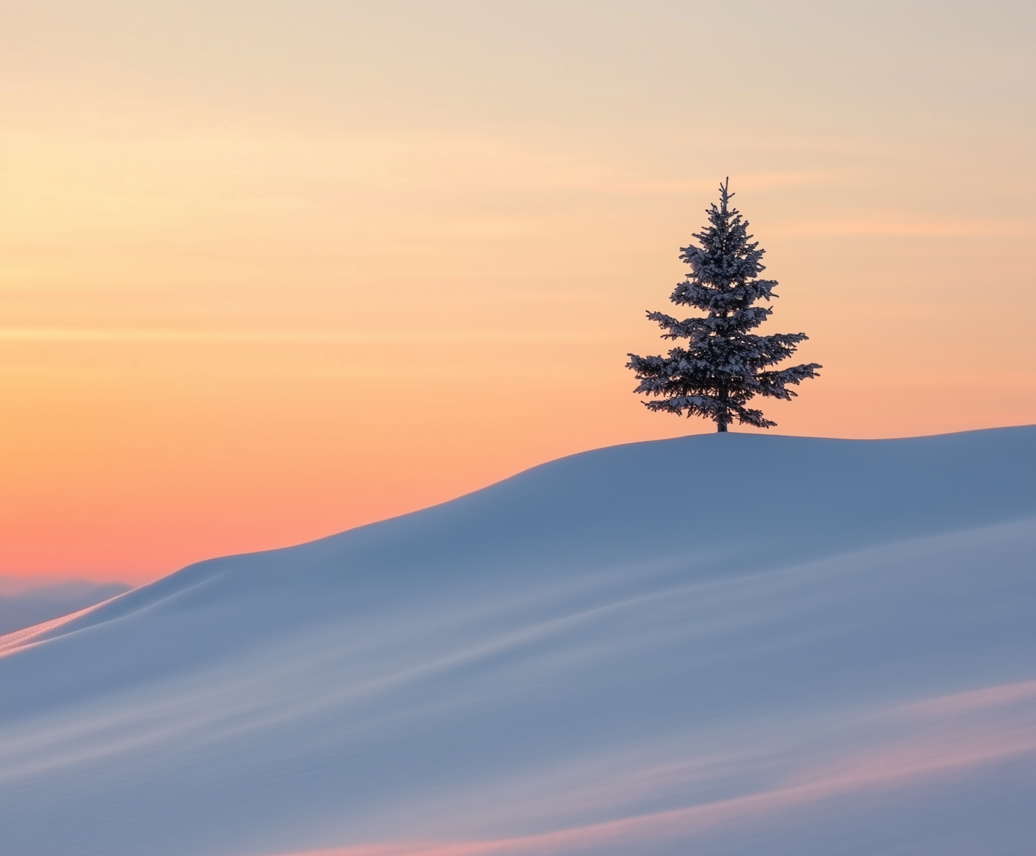 Solitary Evergreen on Snowy Hill