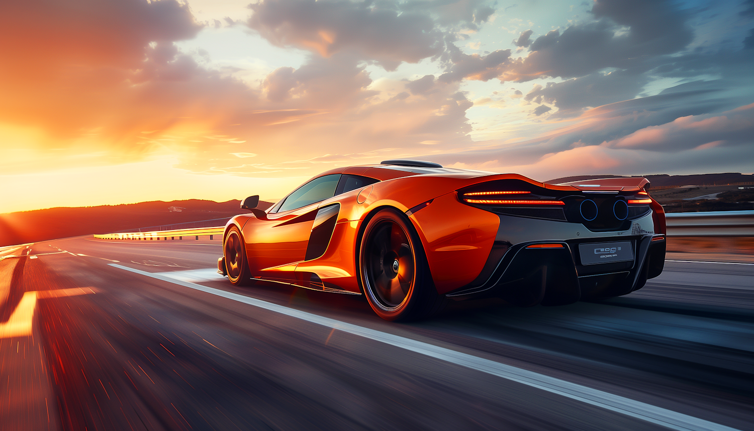 Speeding Sports Car at Sunset