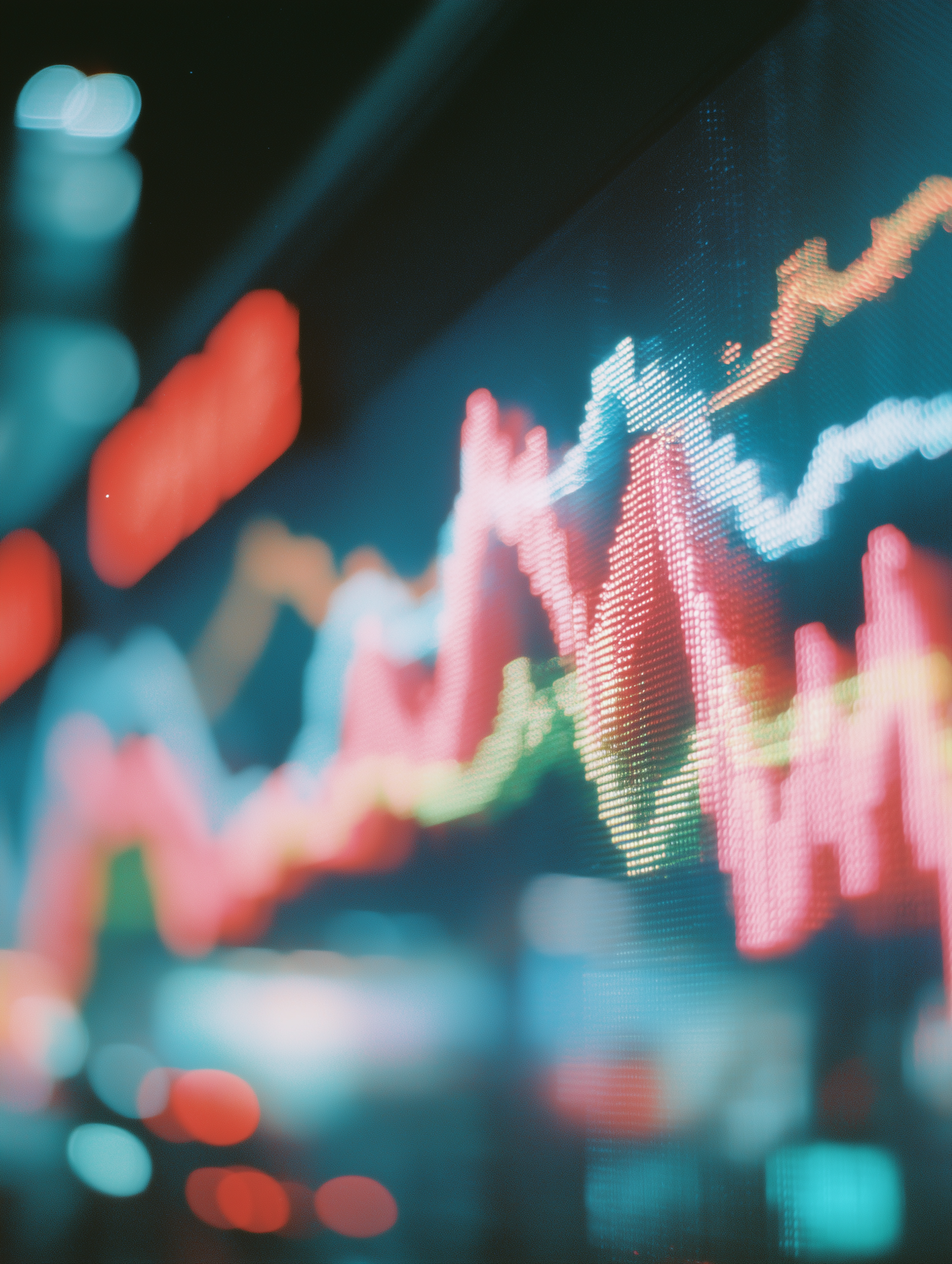 A vibrant stock market display with colorful graphs and data points, showcasing financial trends in a dynamic and modern style.