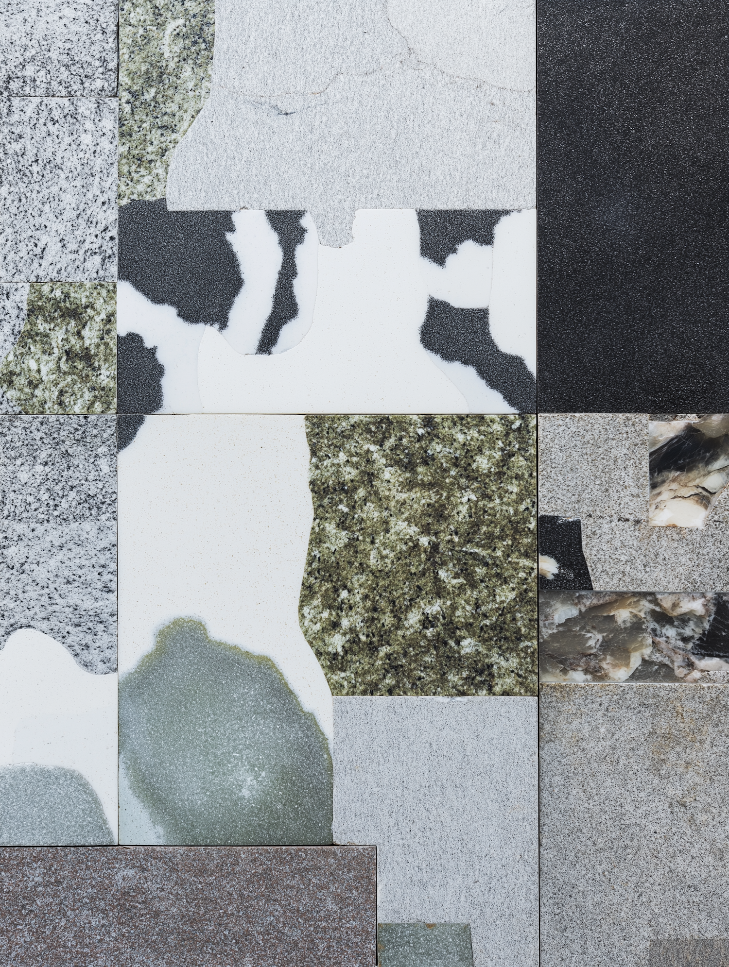 A grid of diverse stone and marble textures showcasing natural patterns and colors like white, black, green, and gray.