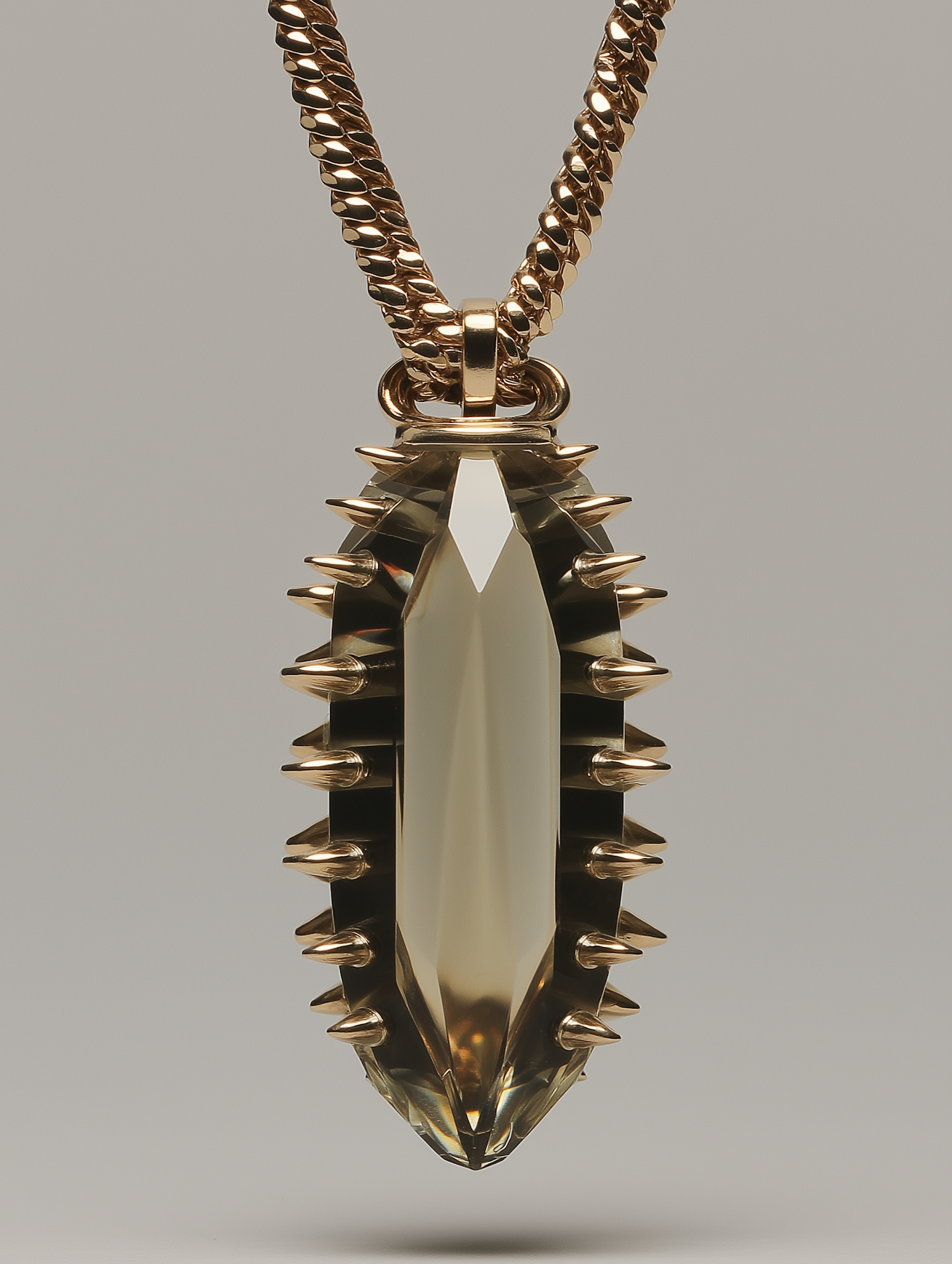 Elegant crystal pendant with gold spikes on a thick chain, blending luxury and edgy style. Perfect for bold fashion statements.