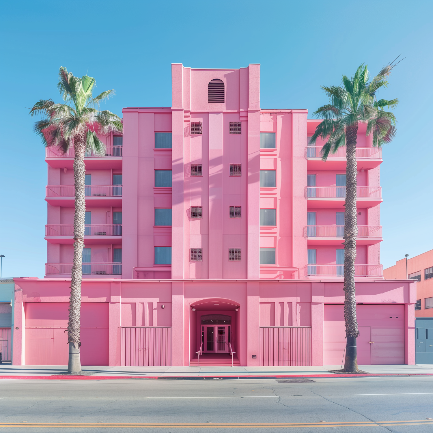 Striking Pink Building with Palm Trees