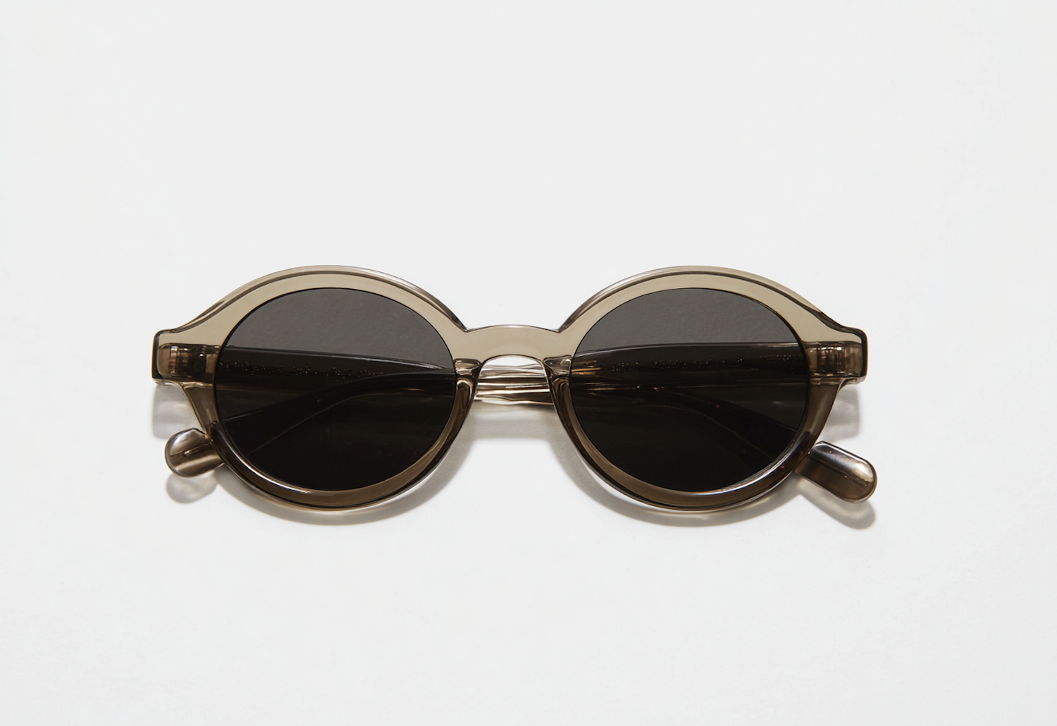 Round sunglasses with dark lenses and a translucent brown frame, offering a retro yet modern style for versatile fashion.