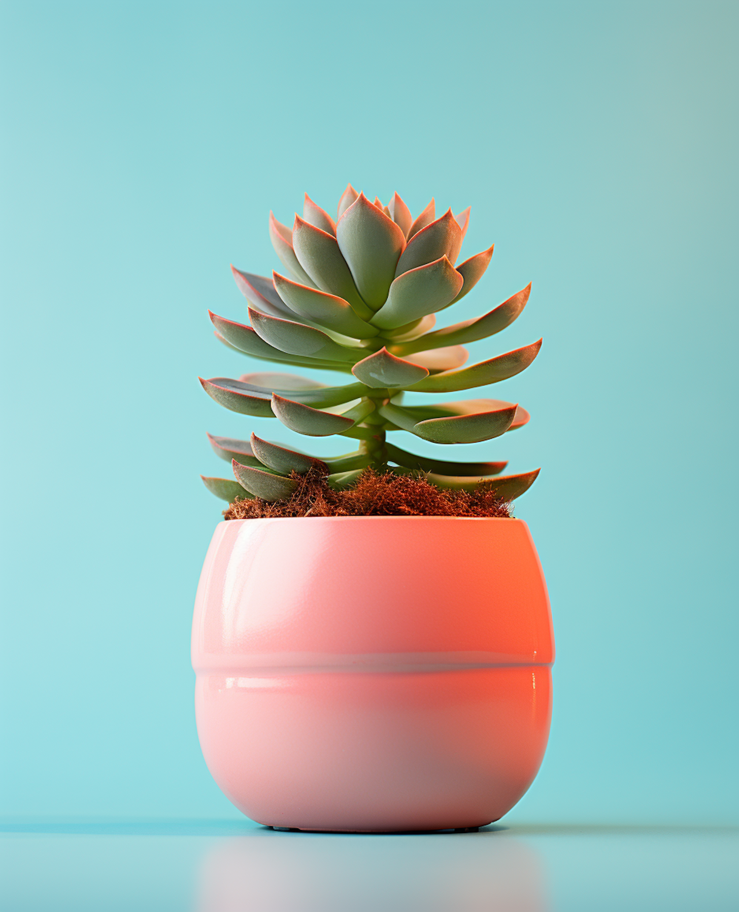 Vibrant succulent in a pink pot against a turquoise background, showcasing minimalistic elegance and vivid colors.