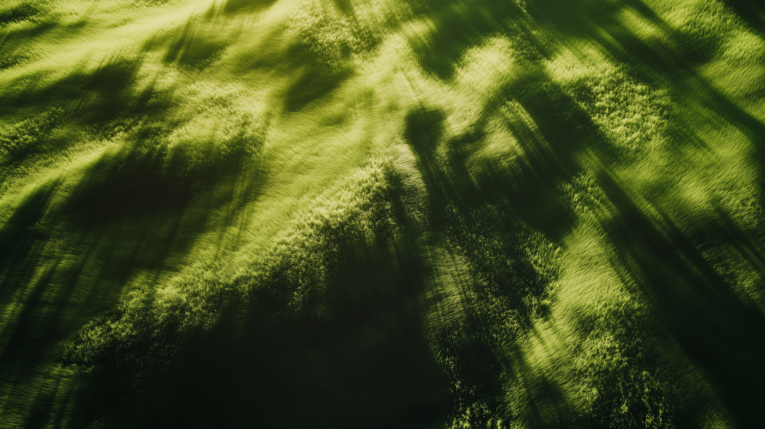 A sunlit grassy field with dynamic shadows creating a textured and vibrant natural scene.
