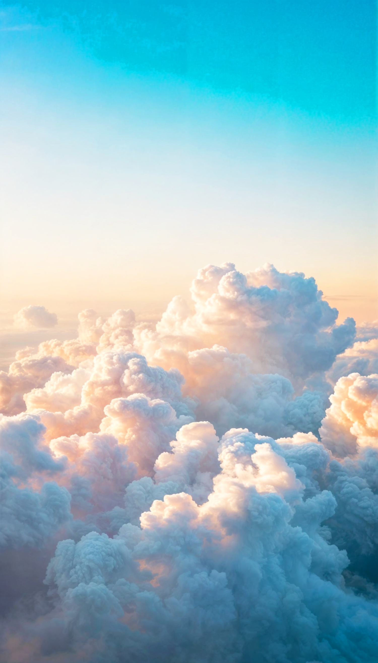 Dreamy clouds bathed in golden light against a vibrant blue sky, creating a serene and tranquil atmosphere.