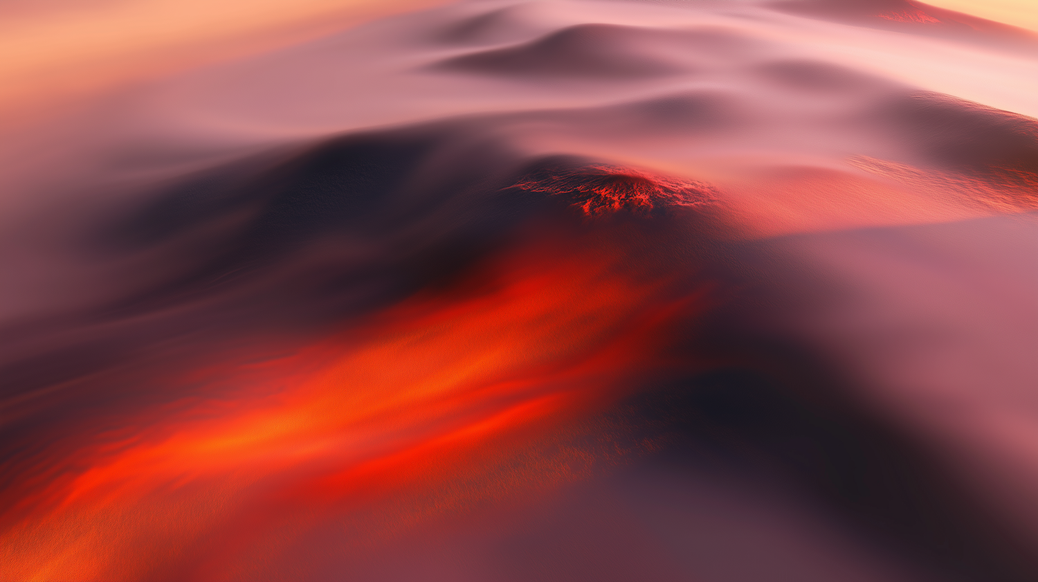 Abstract landscape with flowing red and pink hues, resembling molten dunes or a surreal terrain, glowing with warmth and texture.