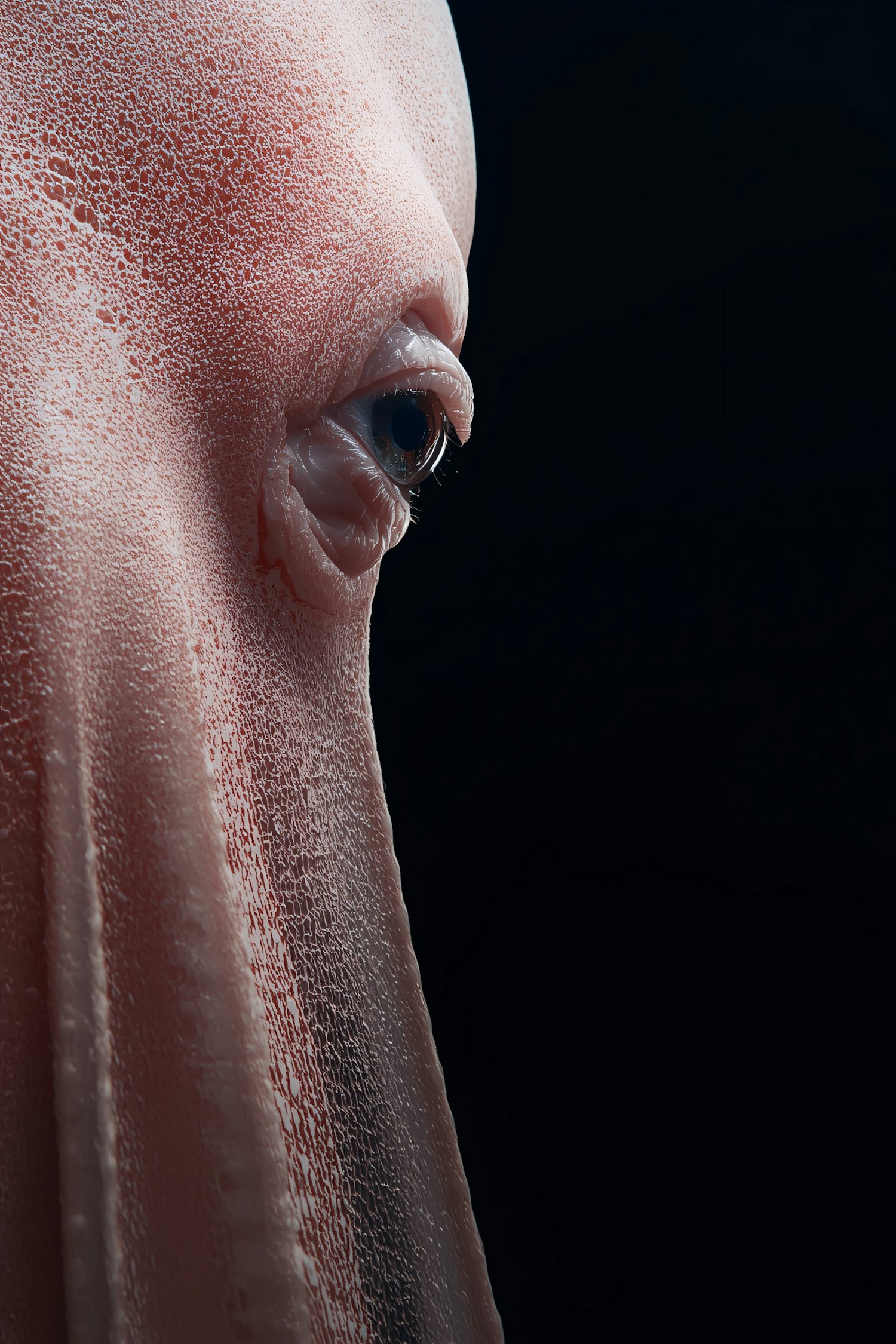 A surreal close-up of a human eye behind a textured, translucent material, creating a mysterious and artistic visual effect.