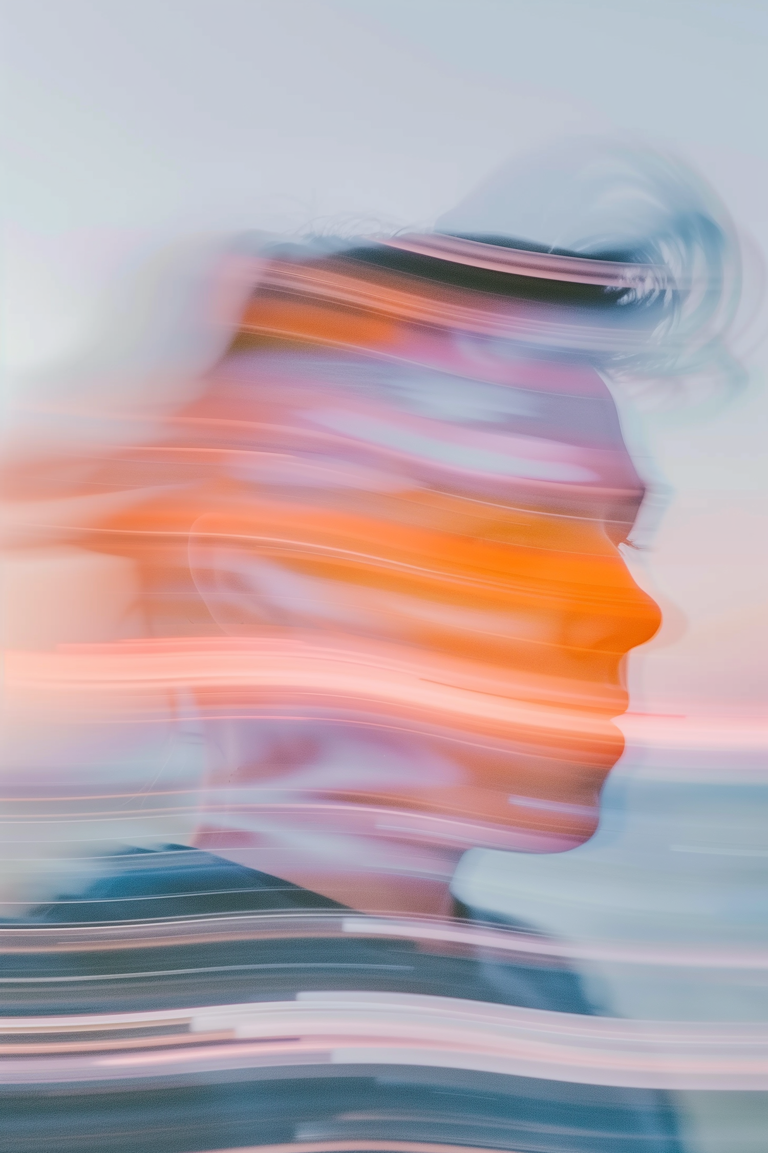 Abstract profile with vibrant orange, pink, and blue light streaks creating a surreal, dreamlike motion effect.