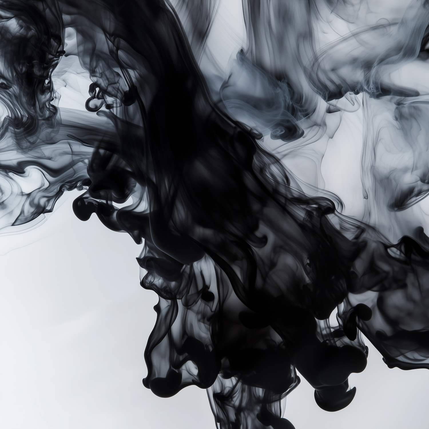 Abstract black ink swirls in clear liquid, creating intricate, smoky patterns against a light background. Perfect for artistic inspiration.