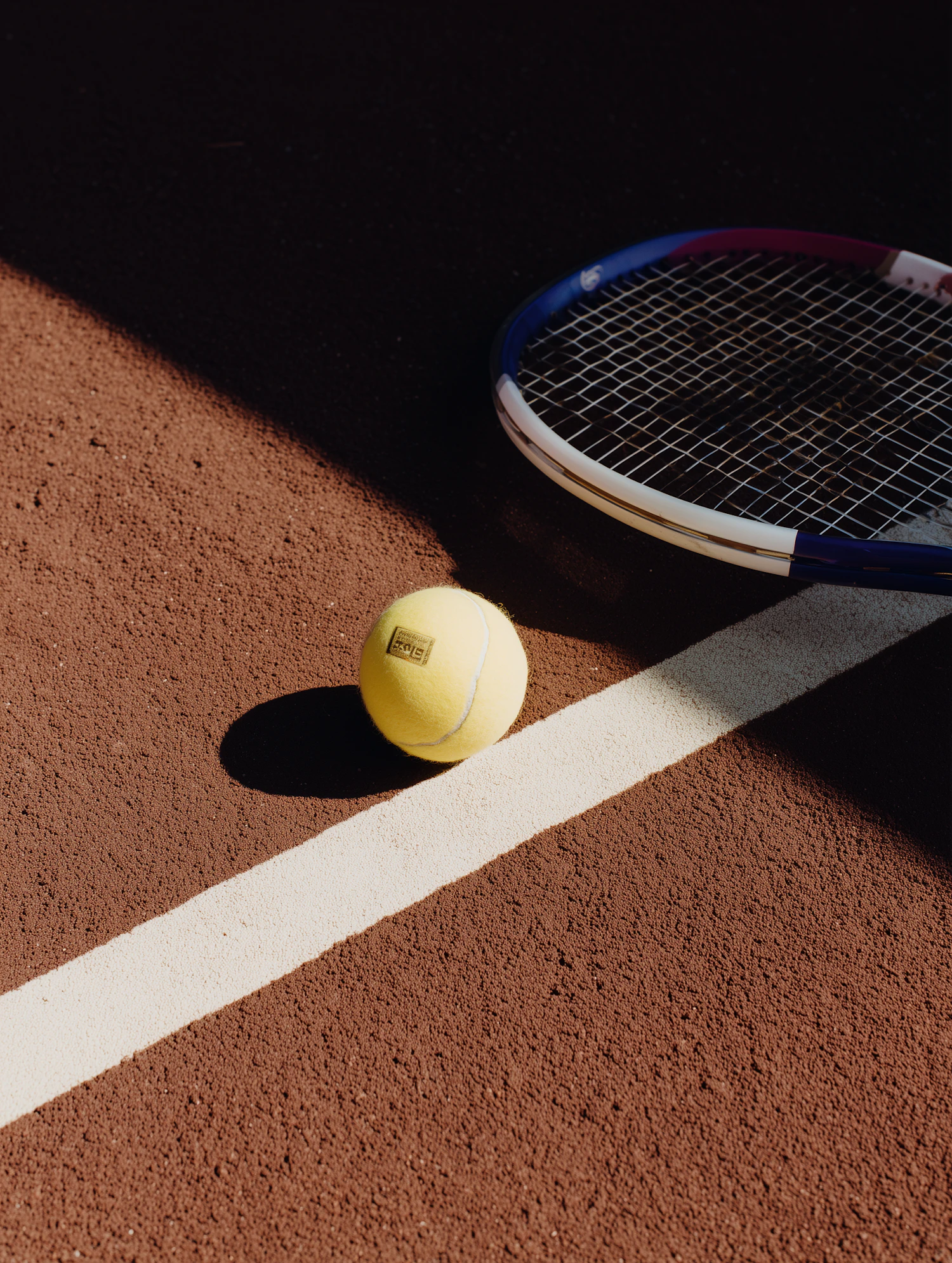 A tennis ball and racket on a sunlit clay court, highlighting the sport's essence with vibrant colors and sharp contrasts.