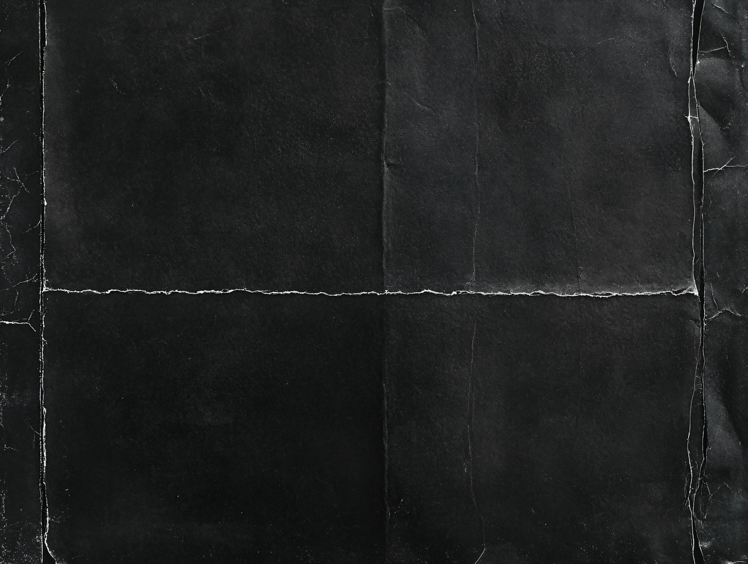 Textured black surface with creases and folds, resembling aged paper. Frayed edges and subtle tonal variations add a vintage feel.