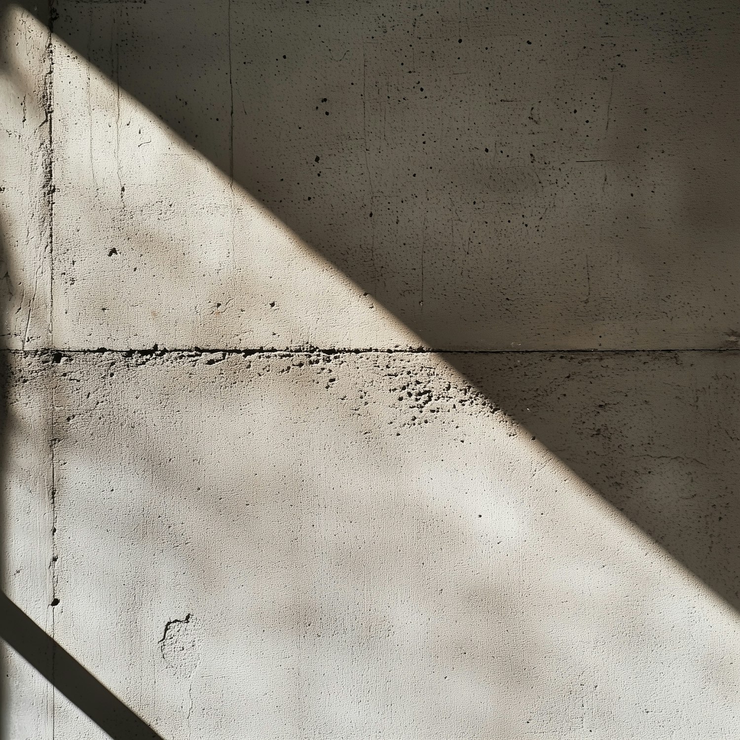 Minimalist concrete wall with textured surface and a diagonal shadow, creating a striking contrast of light and dark tones.