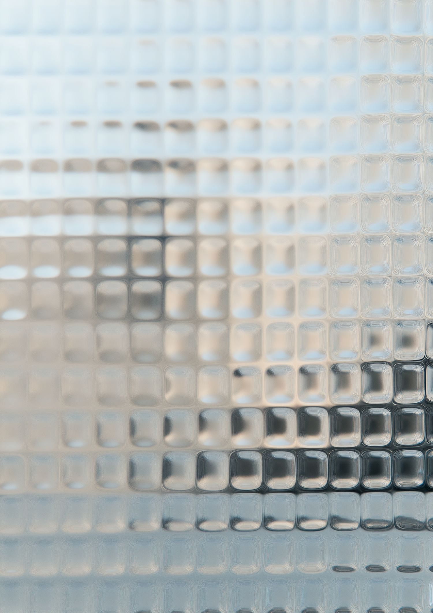 Abstract close-up of textured glass with a grid pattern, featuring soft beige and blue tones. Modern and minimalistic design.
