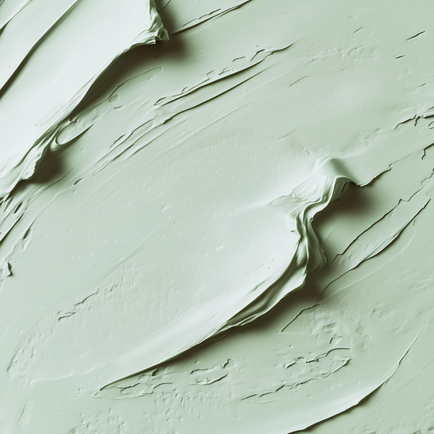 Close-up of a pastel green textured surface with creamy, smooth strokes and soft light reflections, creating a dynamic and fluid pattern.